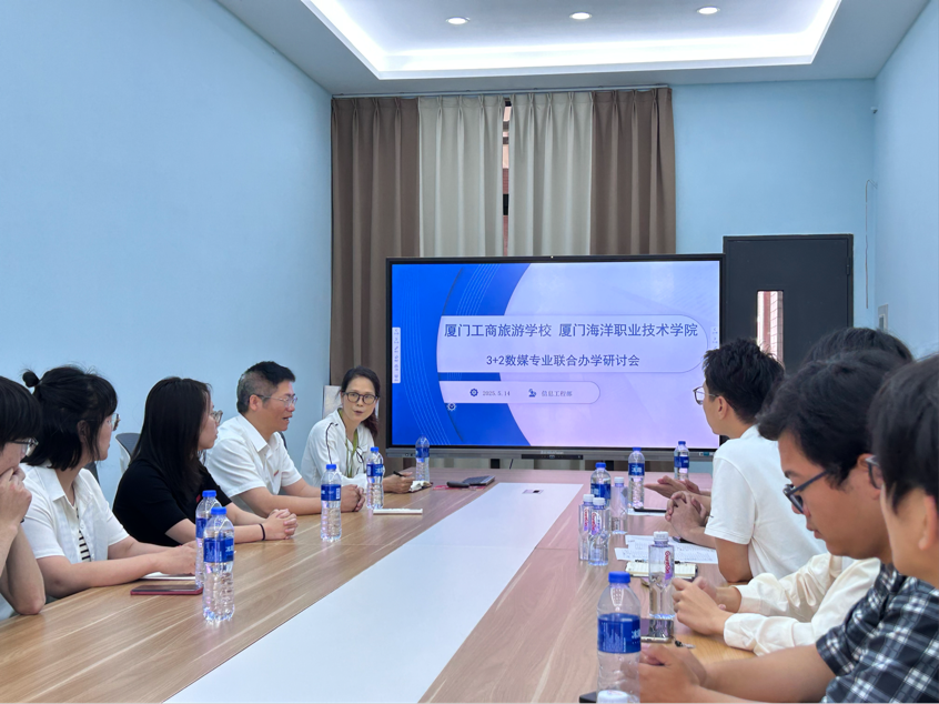 活动期间,我校信息工程学院与厦门工商旅游学校开展数字媒体专业“3+2”联合办学研讨会,双方围绕人才培养目标、课程体系衔接、教师专业能力提升等议题展开深入研讨。