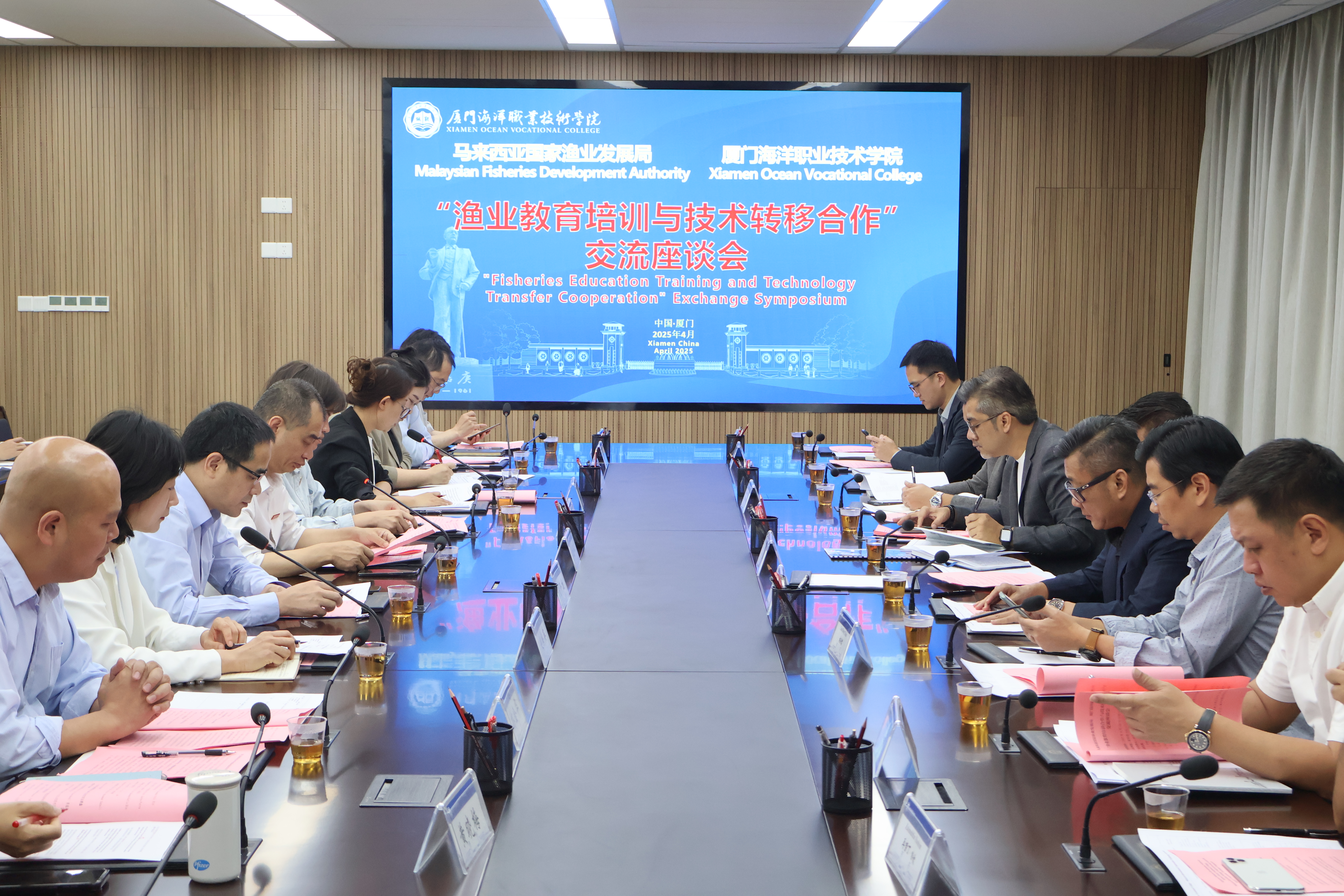 4月16日,马来西亚国家渔业发展局主席穆罕默德・法伊兹・法兹尔,马来西亚澳鑫集团兼吉打农业澳鑫有限公司主席黄文胜拿督斯里一行莅临我校。福建省海洋与渔业局科技与对外合作处处长陆开雄,学校党委副书记缪雄平出席交流座谈。