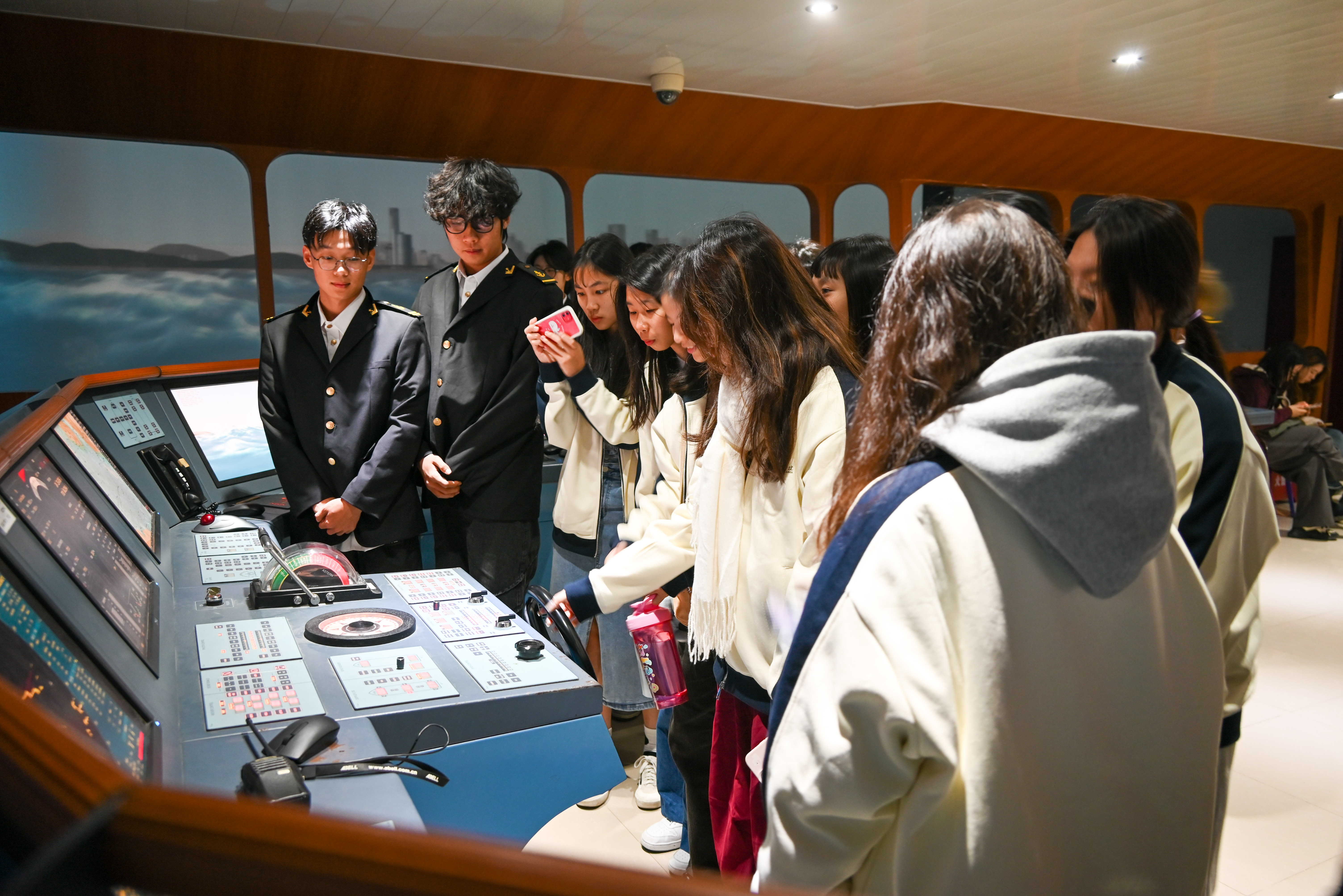 参观操作大型船舶操纵模拟器
