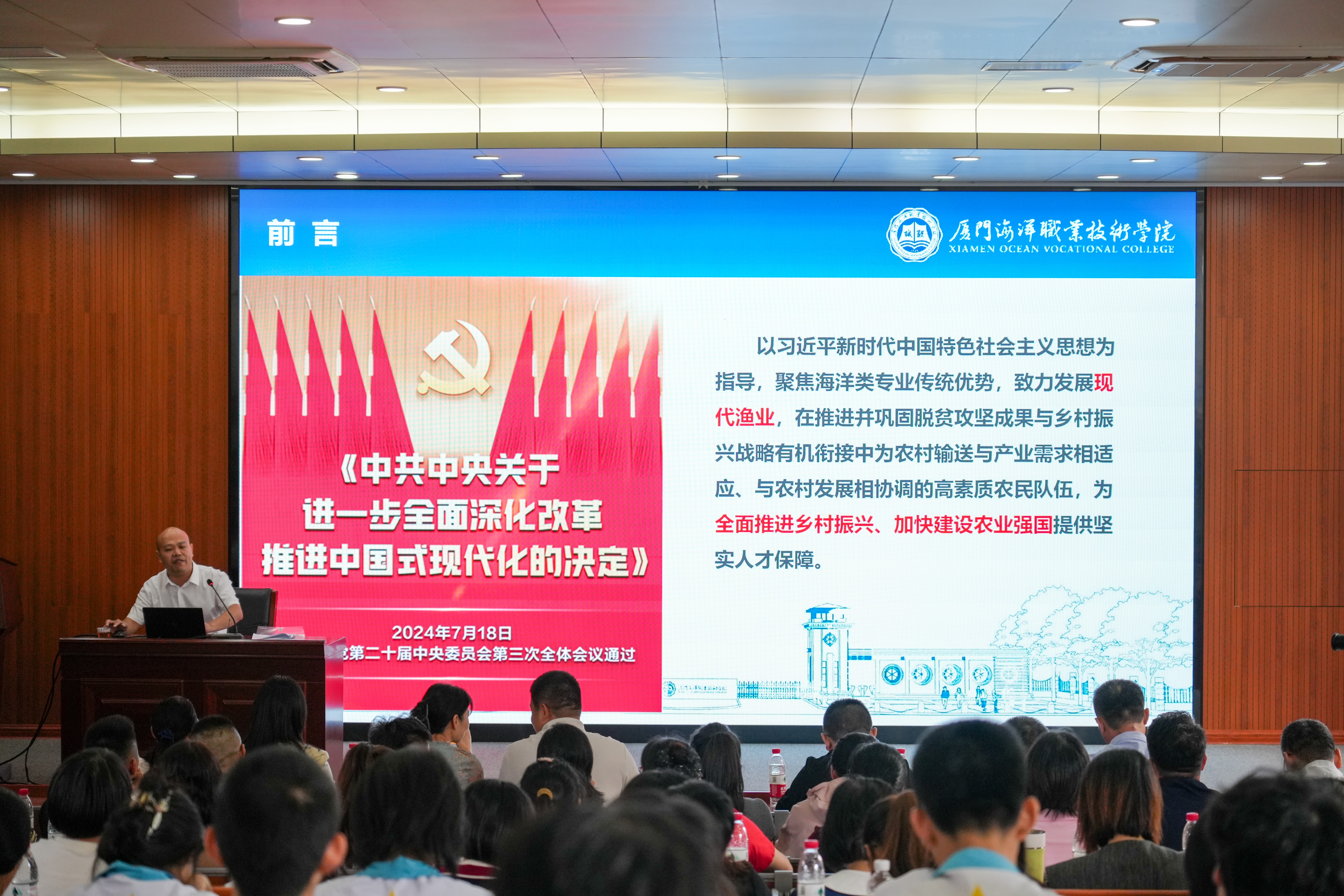 活动现场,4位来自不同领域的宣讲员齐聚一堂,分别就厦门市乡村一二三产融合发展路径、智慧渔业助力乡村振兴、非物质文化遗产传承与活化、党建引领乡村振兴等前沿话题,为与会师生及社区(村)“两委”成员进行分析、讲解。