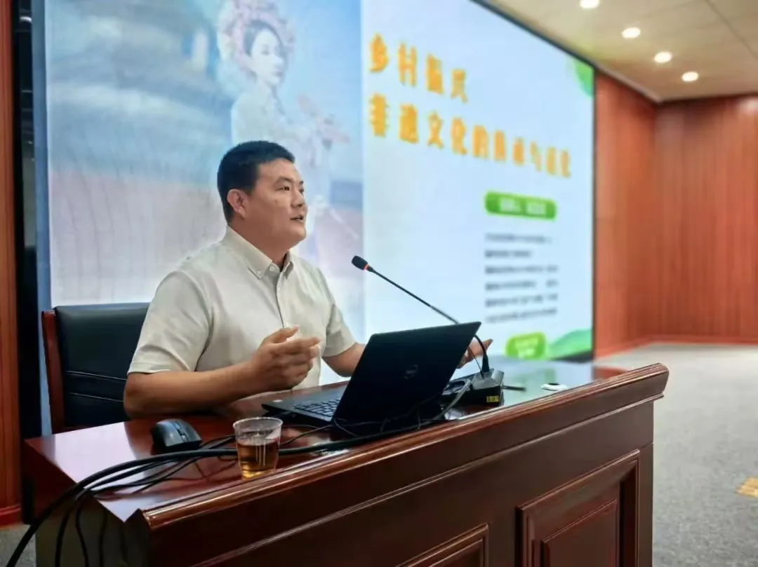文旅部乡村文化和旅游人才、福建省首批文旅特派员吴泗海带来题为《非遗的传承与活化》的精彩宣讲。他通过生动的故事和案例,阐述如何构建“非遗+产业”新模式,并通过泉州簪花的成功案例,与大家交流拍胸舞等翔安区非物质文化遗产破圈而出、焕发新生的路径。