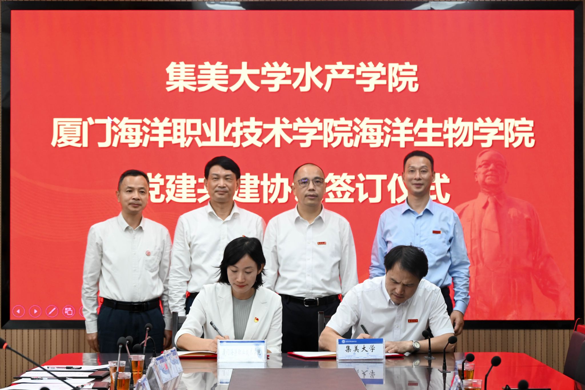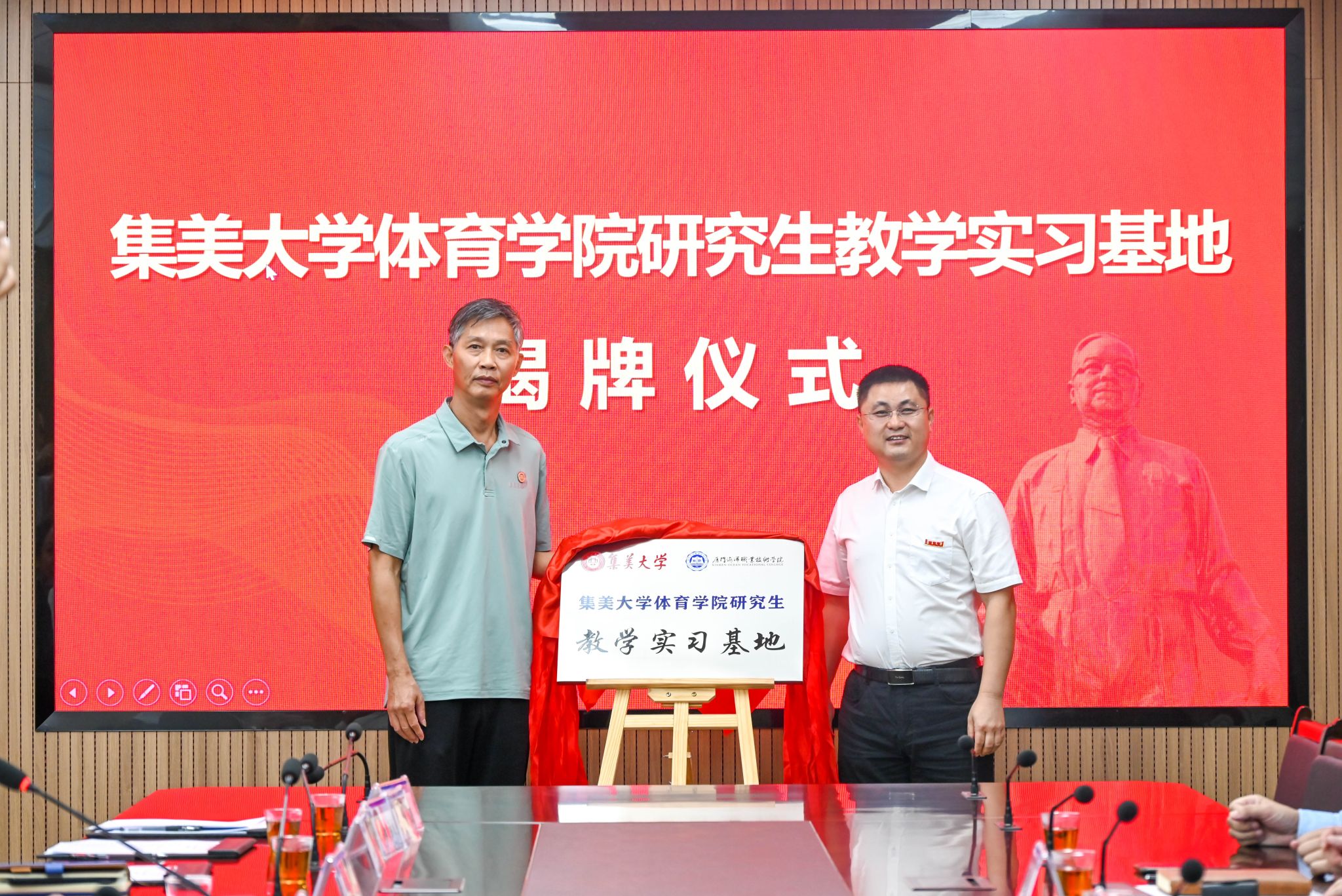 此次除签署两校战略合作协议外,我校航海学院、海洋生物学院分别与集美大学航海学院、水产学院签订党建共建协议,公共教育学院与集美大学体育学院签订合作共建协议并共同为“集美大学体育学院研究生教学实习基地”揭牌。