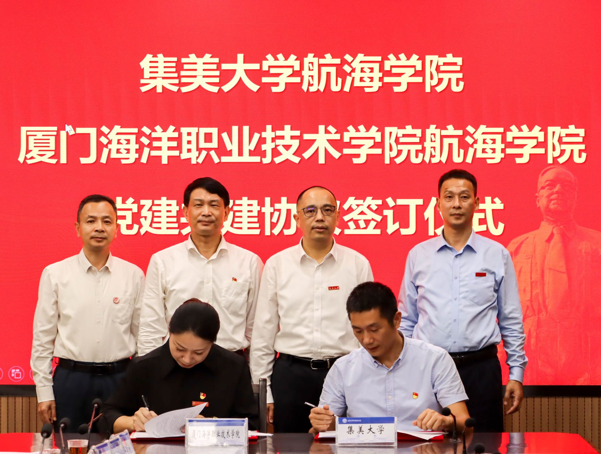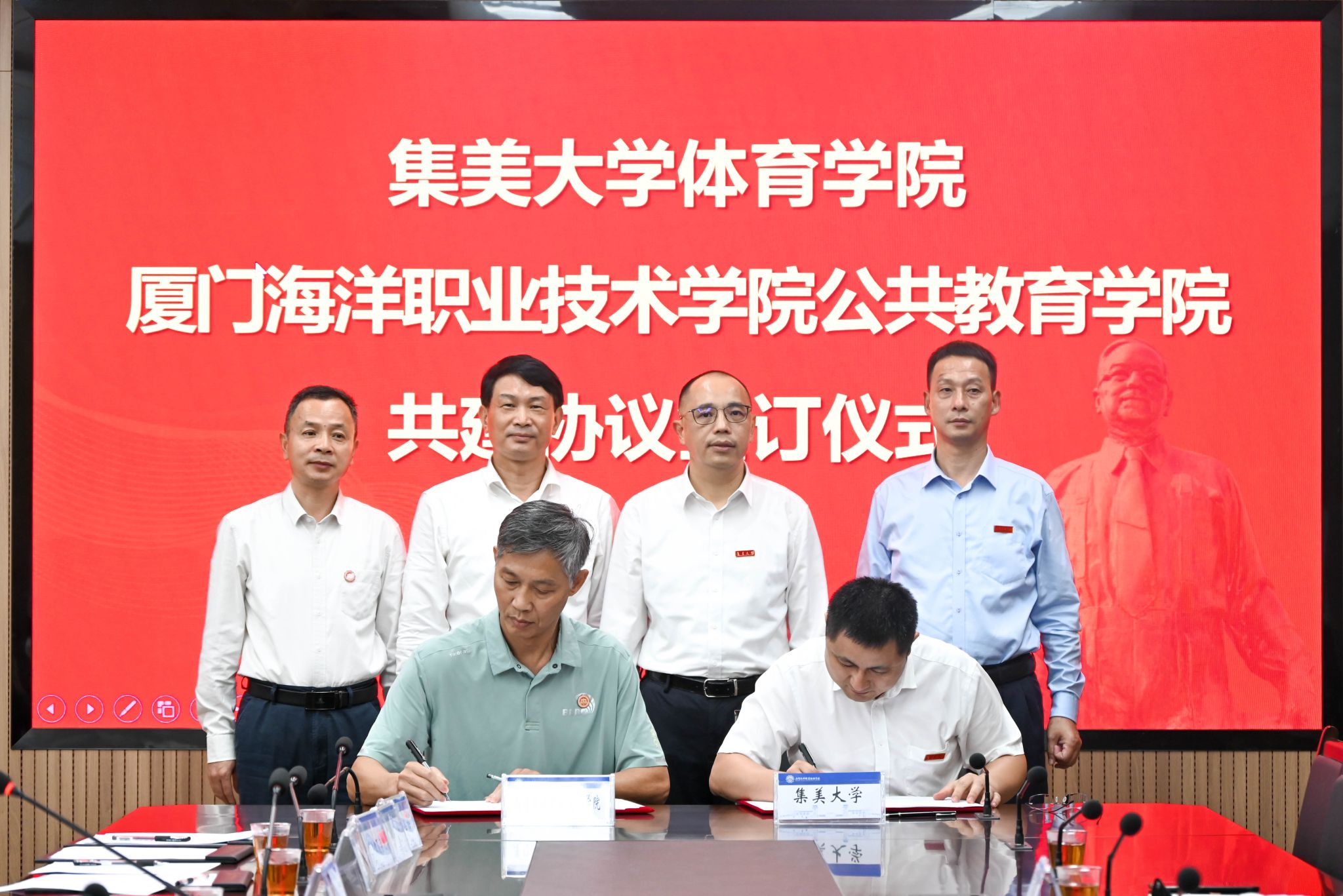 集美大学学校办公室、发展规划处,我校党政办公室、组织部、发展规划与质量管理处、人事处、教务处、对外交流合作中心、继续教育学院、科研与产教融合处等部门负责人参加签约仪式。