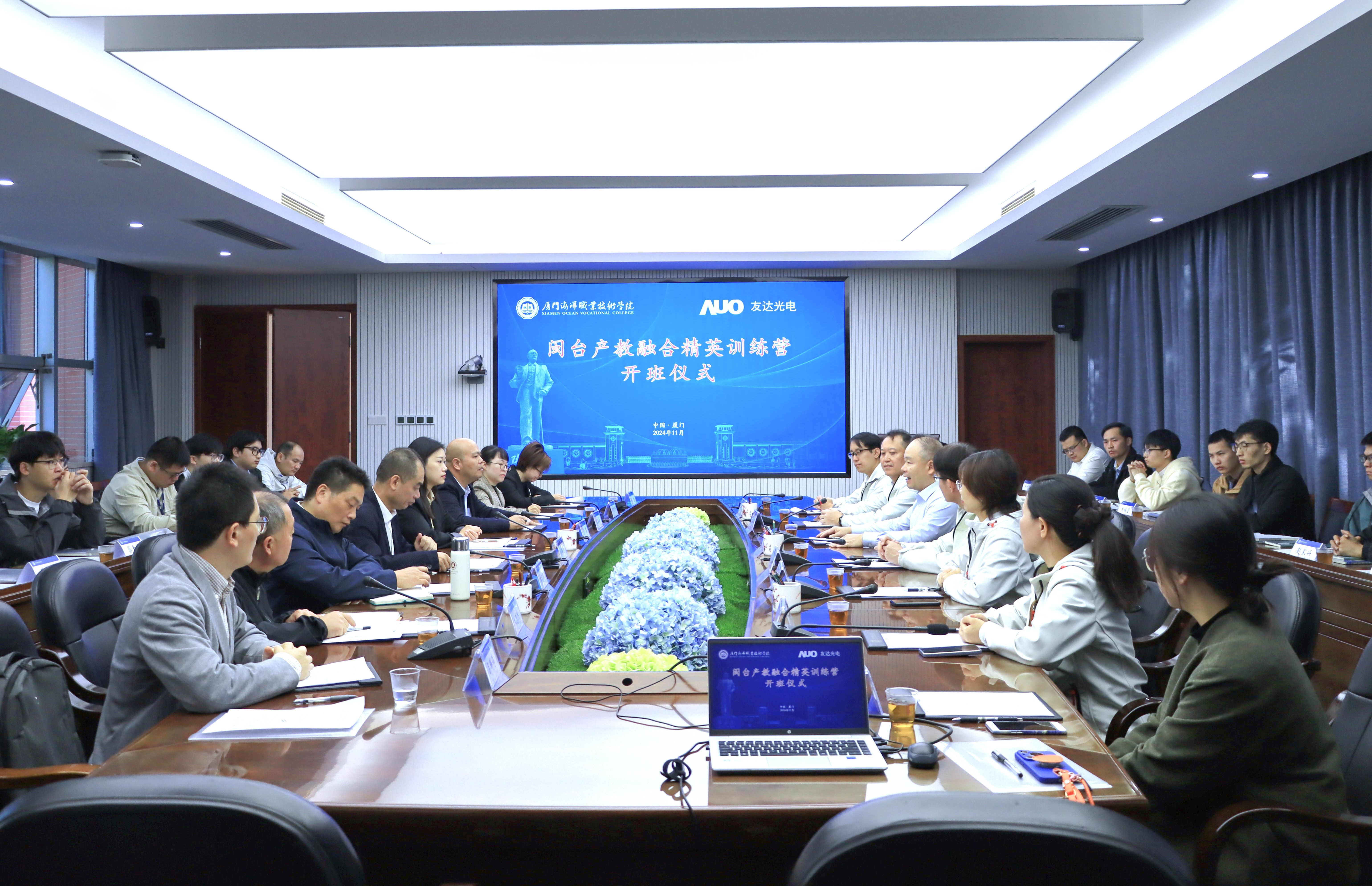 开班仪式结束后,校企双方代表就人才培养、企业培训等方面进行深入交流。友达光电(厦门)有限公司相关部门负责人、“闽台产教融合精英训练营”全体学员,学校党委宣传部、发展规划与质量管理处、教务处、继续教育学院、海洋机电学院负责人参加开班仪式。