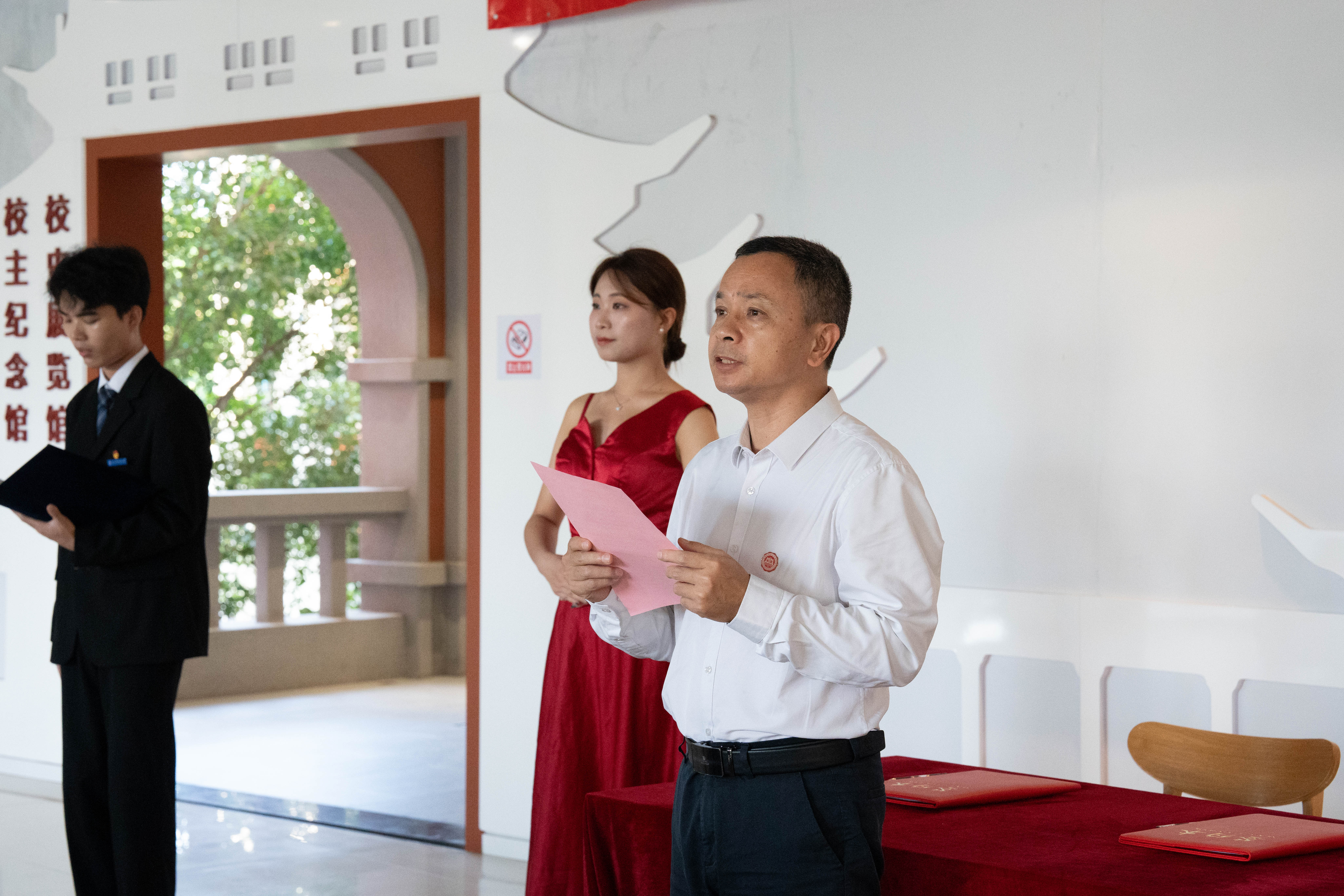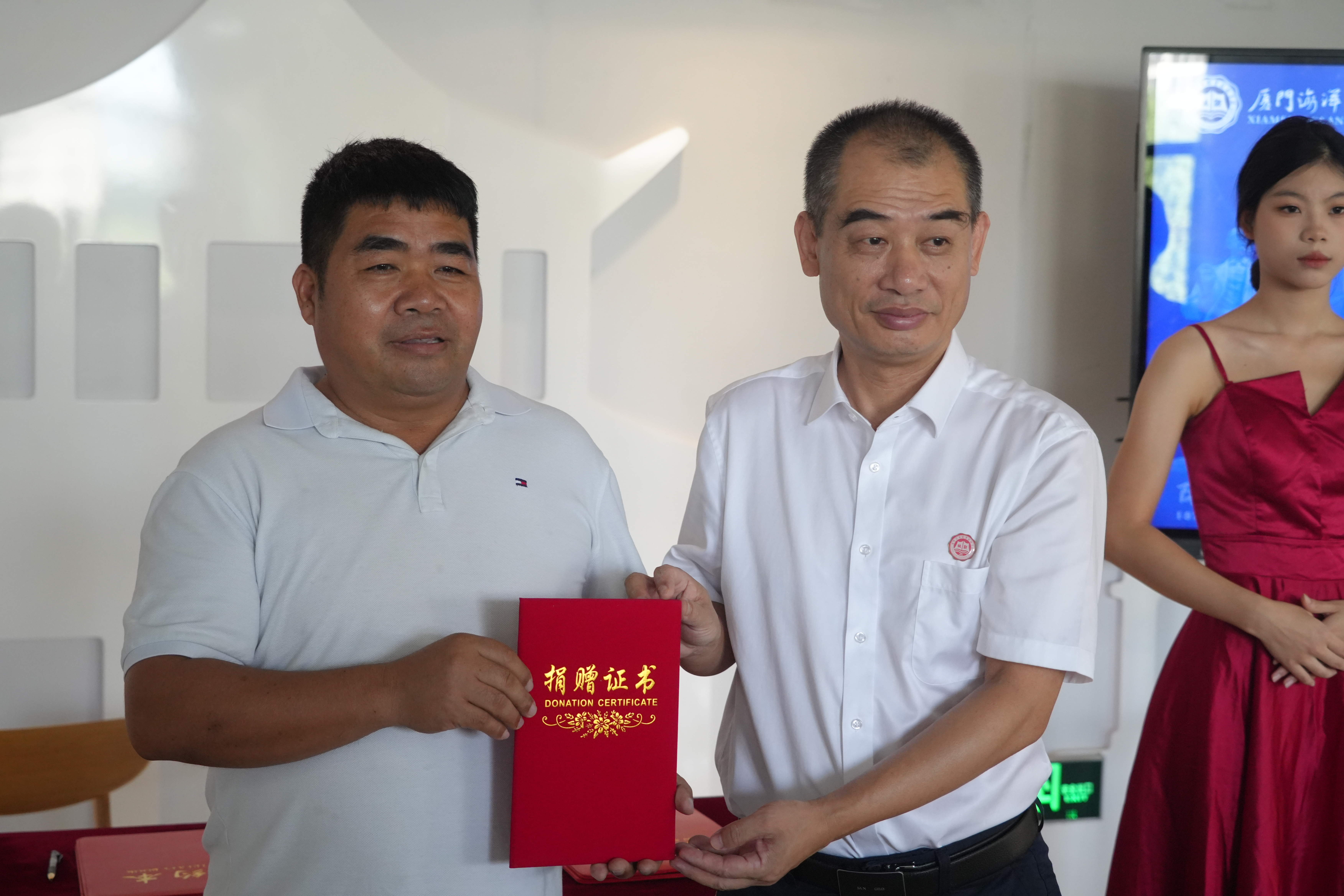 在签约仪式上,图书馆馆长缪明聪代表学校与捐赠人陈有铭签订捐赠协议。党委副书记缪雄平代表学校为捐赠人颁发捐赠证书,对校友的善举表示衷心感谢。校党委副书记、院长刘光明表示,今年正值校主陈嘉庚先生诞辰150周年,此次捐赠不仅体现了校友对母校的深厚情感,也是新时代传扬嘉庚精神的具体实践,是海院“春风化雨 桃李满园”的精神文化的生动诠释。陈有铭校友的捐赠将善款善用,将这份爱心传递给全体师生,以优异的办学成绩回报各界的关怀和支持。