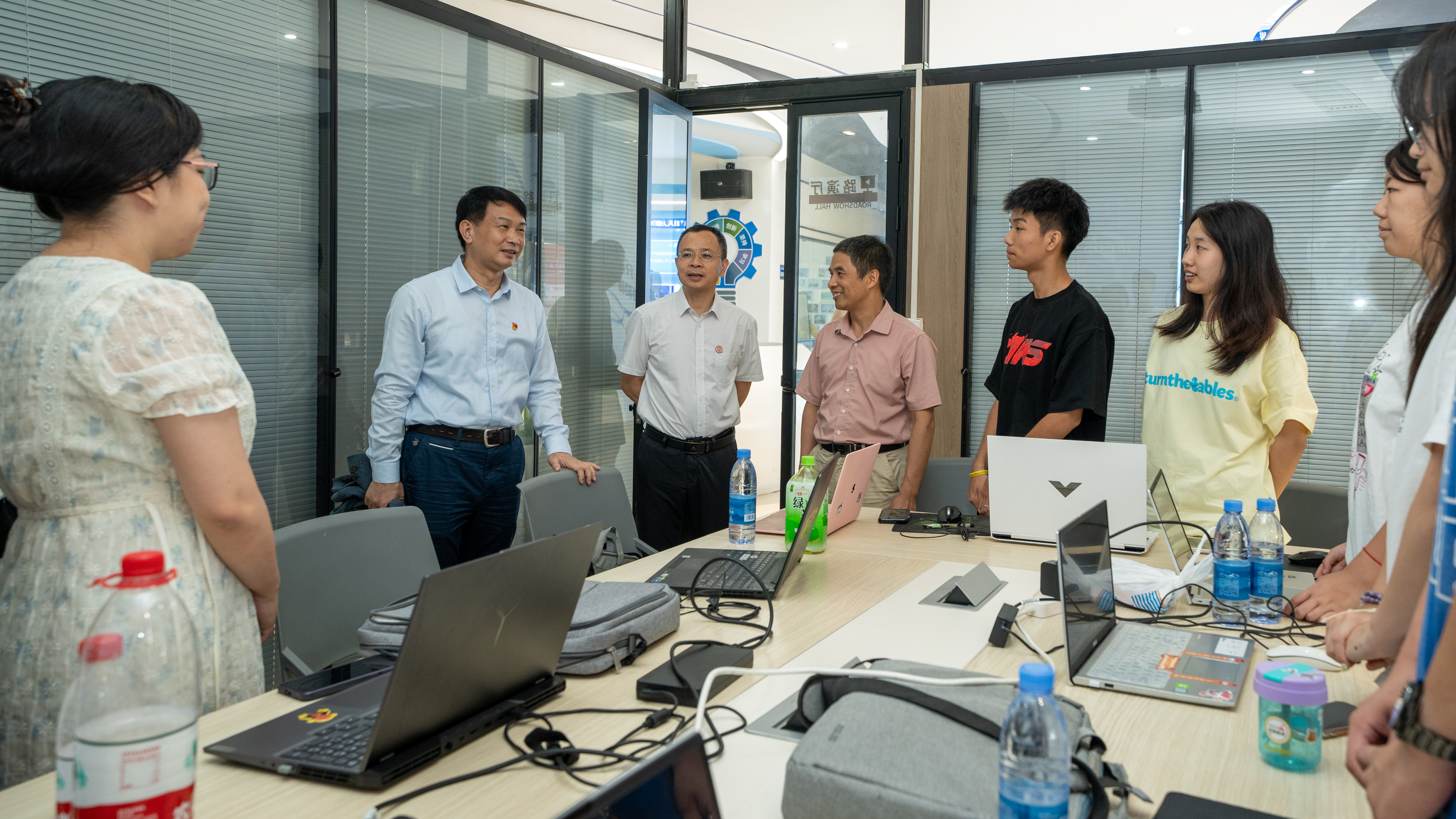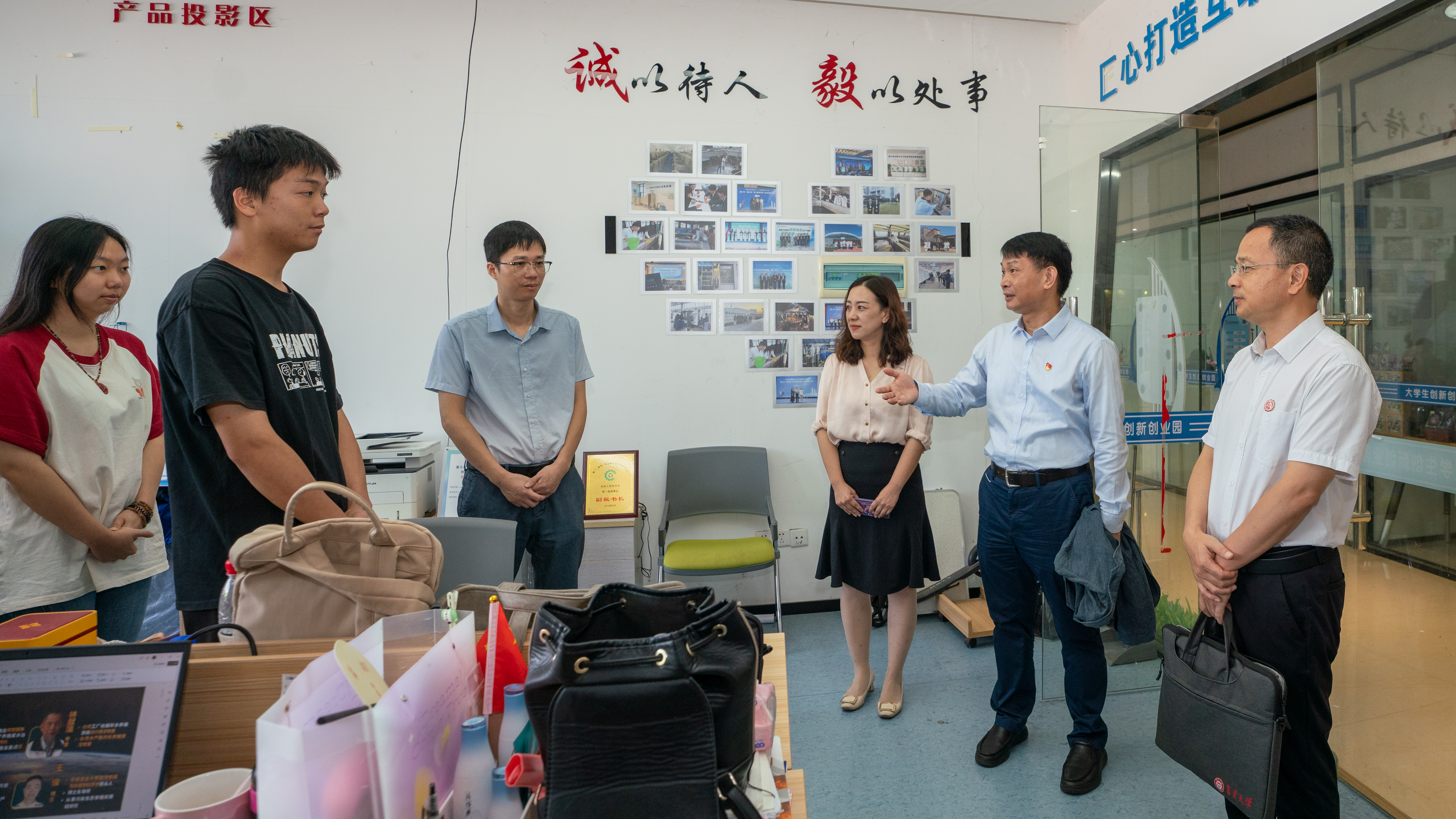 为全面推动党纪学习教育走深走实,切实把习近平新时代中国特色社会主义思想转化为服务师生的实际行动,7月12日,党委书记陈一端,党委副书记、院长刘光明深入三创学院大学生创新创业园看望中国国际大学生创新大赛(2024)省赛备赛师生团队,对参赛的学生团队表示了深切的关心和慰问。