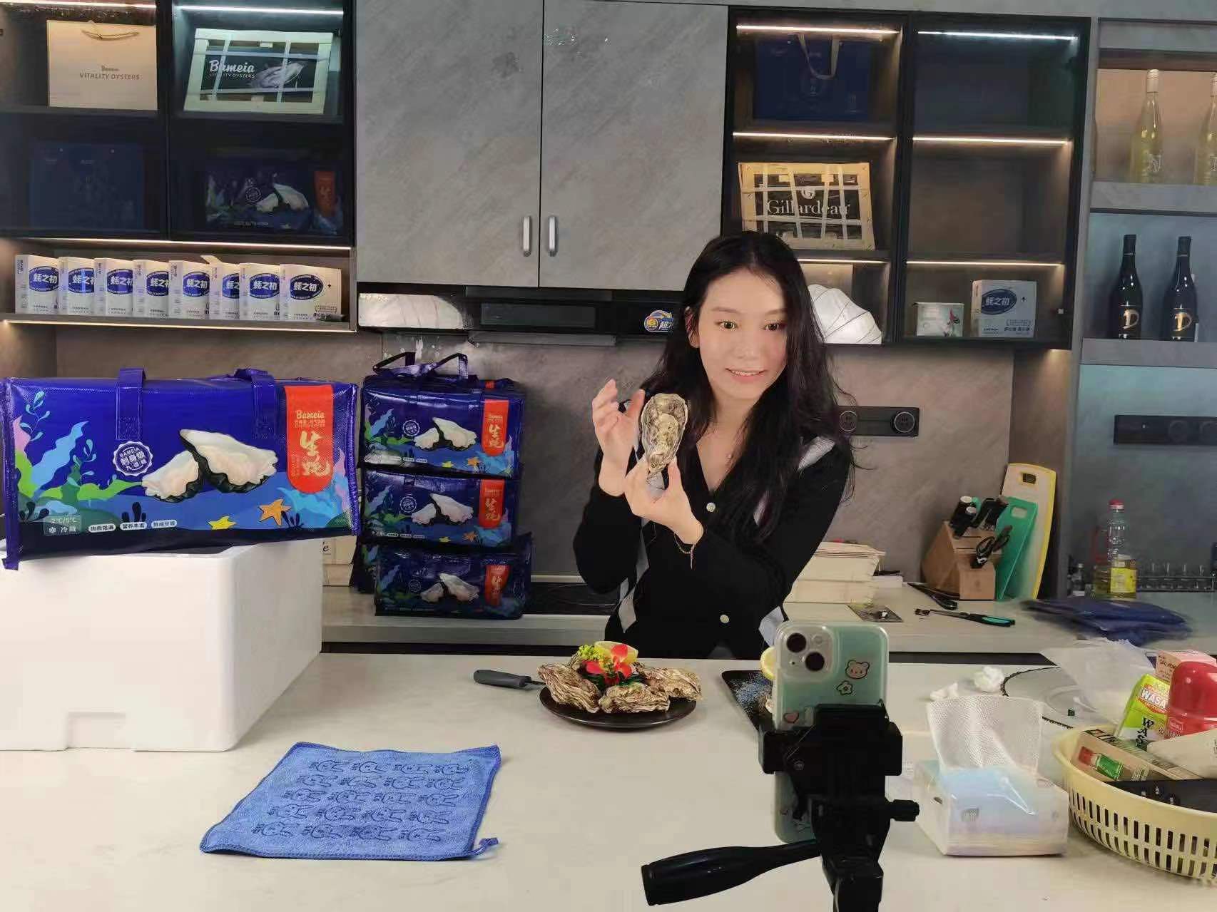 在“职业岗位体验周”体验水产品直播销售工作