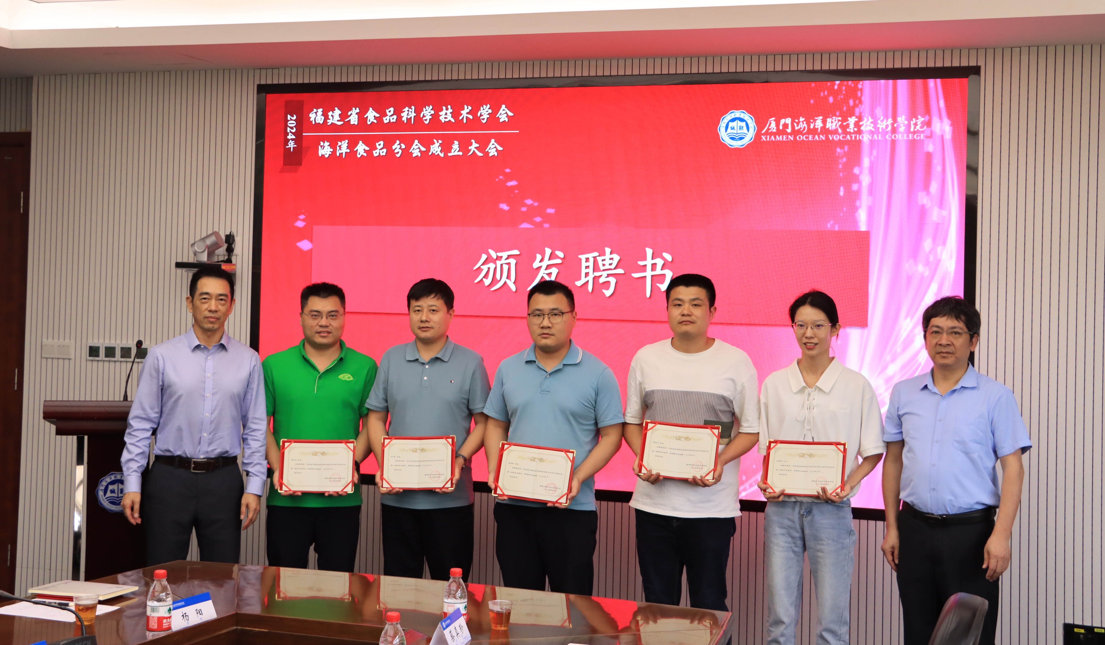 4月24日,福建省食品科学技术学会海洋食品分会成立大会在我校召开。福建省食品科学技术学会理事长倪莉教授、福建省食品科学技术学会秘书长张雯副教授、厦门海洋职业技术学院党委委员、副院长倪辉教授以及来自安井食品集团股份有限公司、厦门海关技术中心、福州大学、集美大学、福建农林大学、福建师范大学、华侨大学、福建农业科学院、福建水产研究所、自然资源部第三海洋研究所、闽江学院、闽南师范大学、福建技术师范学院、泉州师范学院、宁德师范学院、厦门华夏学院、闽南科技学院、黎明职业大学、泉州轻工职业学院、漳州职业技术学院、漳州城市职业学院、泉州晋兴职业中专学校等22个单位的专家代表及我校海洋生物学院教师代表参加会议。会议由海洋生物学院院长蔡真珍主持。