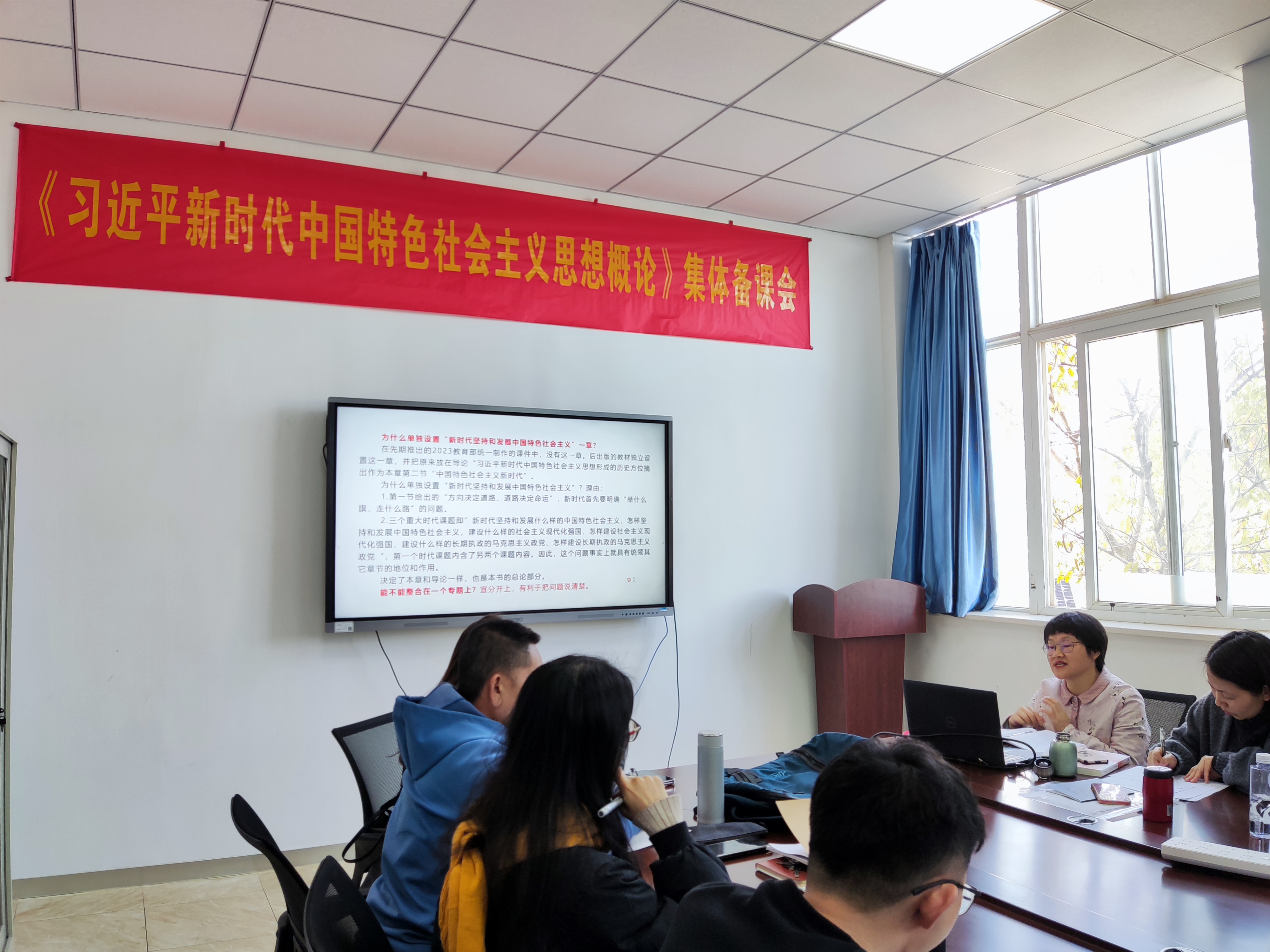 会上,马克思主义学院负责人汇报了学院落实习近平总书记“3.18”重要讲话精神的主要做法和成效。思政课教师代表分别进行了新学期《习近平新时代中国特色社会主义思想概论》说课和示范教学展示,就教学重难点进行了充分的研讨,分享了各自在教学过程中的方法和经验。