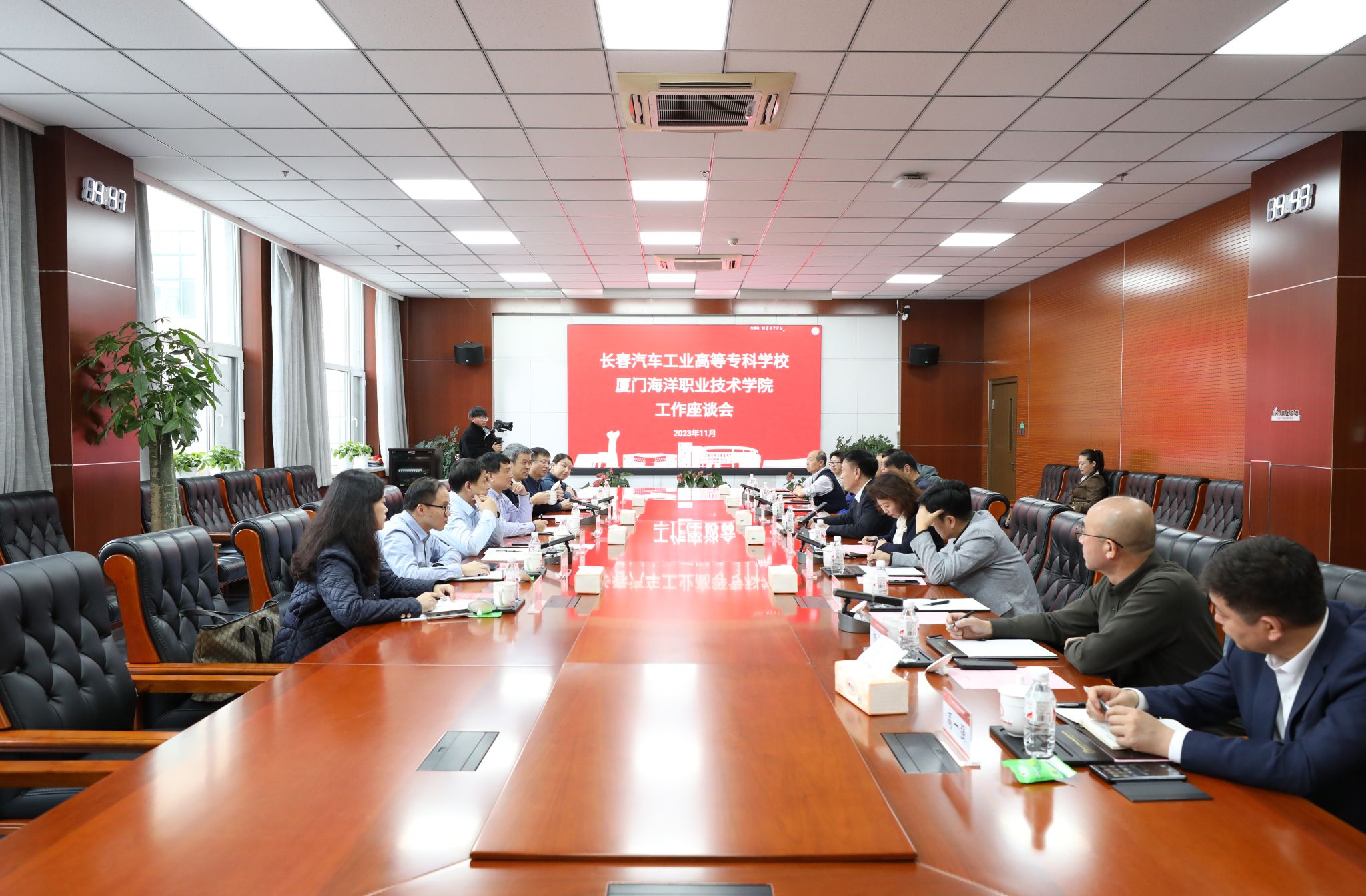 座谈会上,陈一端、陈昌萍对长春汽车工业高等专科学校的热情接待表示感谢,对该校在服务中国先进制造业、培养汽车产业高素质技能人才上的贡献和成就表示由衷敬佩,并介绍了我校的历史沿革、发展情况以及在专业建设、人才培养、产教融合、科教融汇等方面的探索实践。他们表示,两校同为办学底蕴深厚、行业特色鲜明的职业院校,在创建高水平本科层次职业学校上具有共同的目标愿景,长春汽车工业高等专科学校所取得的经验和成绩十分值得我校学习,希望双方今后能不断加深友谊、深化交流合作、促进共同发展。