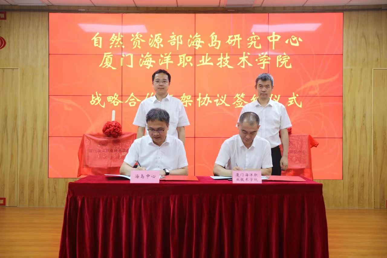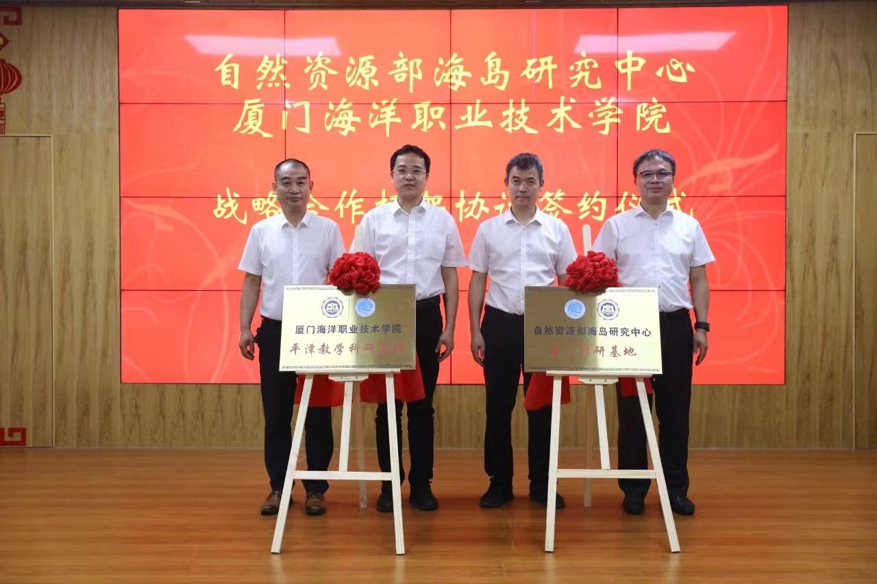 签约仪式上,张海峰、陈昌萍、洪再展、缪雄平为“厦门海洋职业技术学院平潭教学科研基地”“自然资源部海岛研究中心厦门科研基地”揭牌。洪再展、缪雄平代表双方签署《自然资源部海岛研究中心 厦门海洋职业技术学院战略合作协议》。根据协议,双方将在专业和学科建设、队伍建设、科研与社会服务、国际交流与合作等多领域开展全方位教育教学合作和资源共建共享,高位打造产教融合、科教融汇新模式,为更高水平的“海上福建”建设和海洋强国战略提供优秀人才和科技支撑。