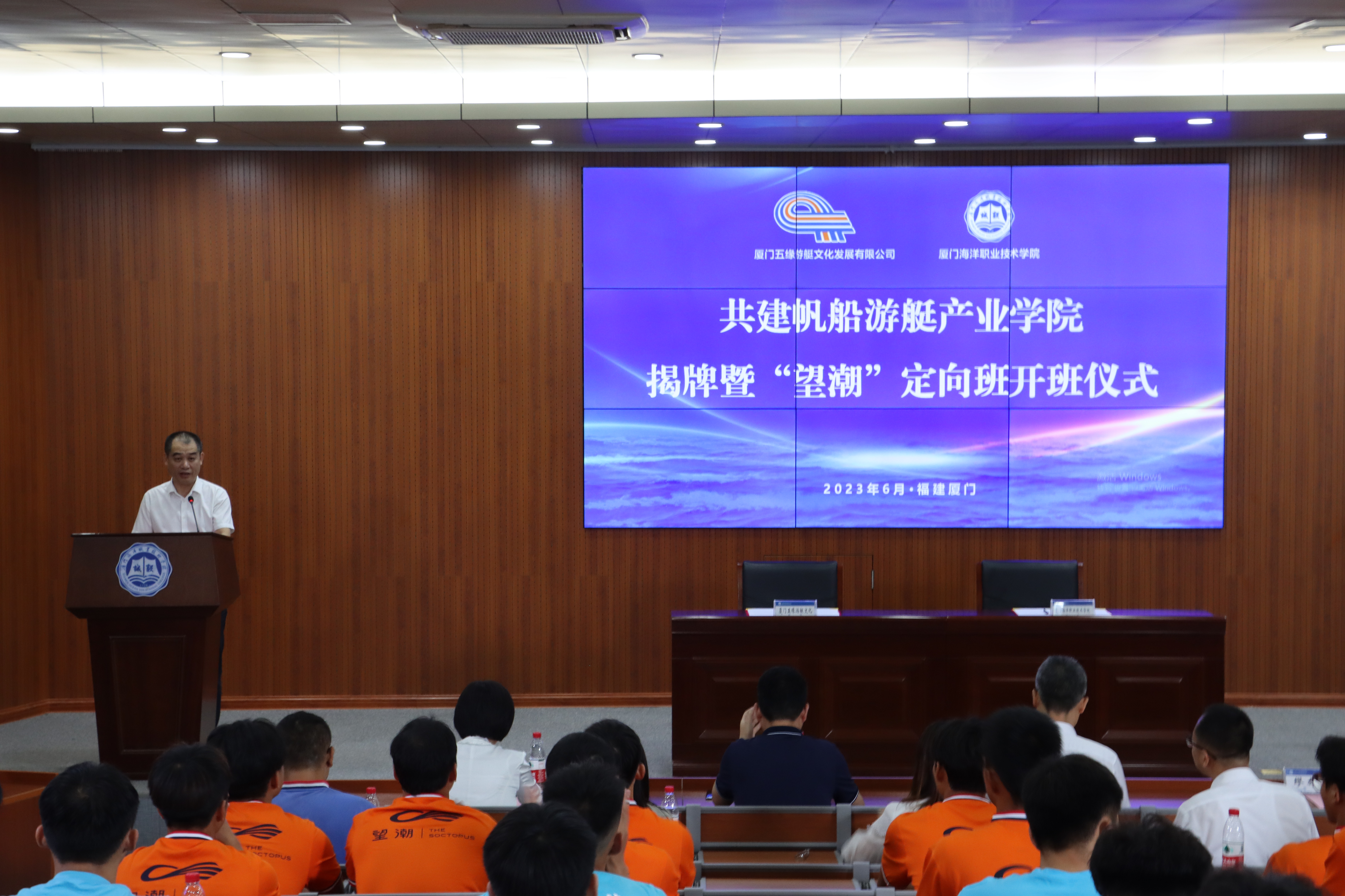 现场举行帆船游艇产业学院签约、揭牌仪式,“望潮”定向班开班仪式等活动。