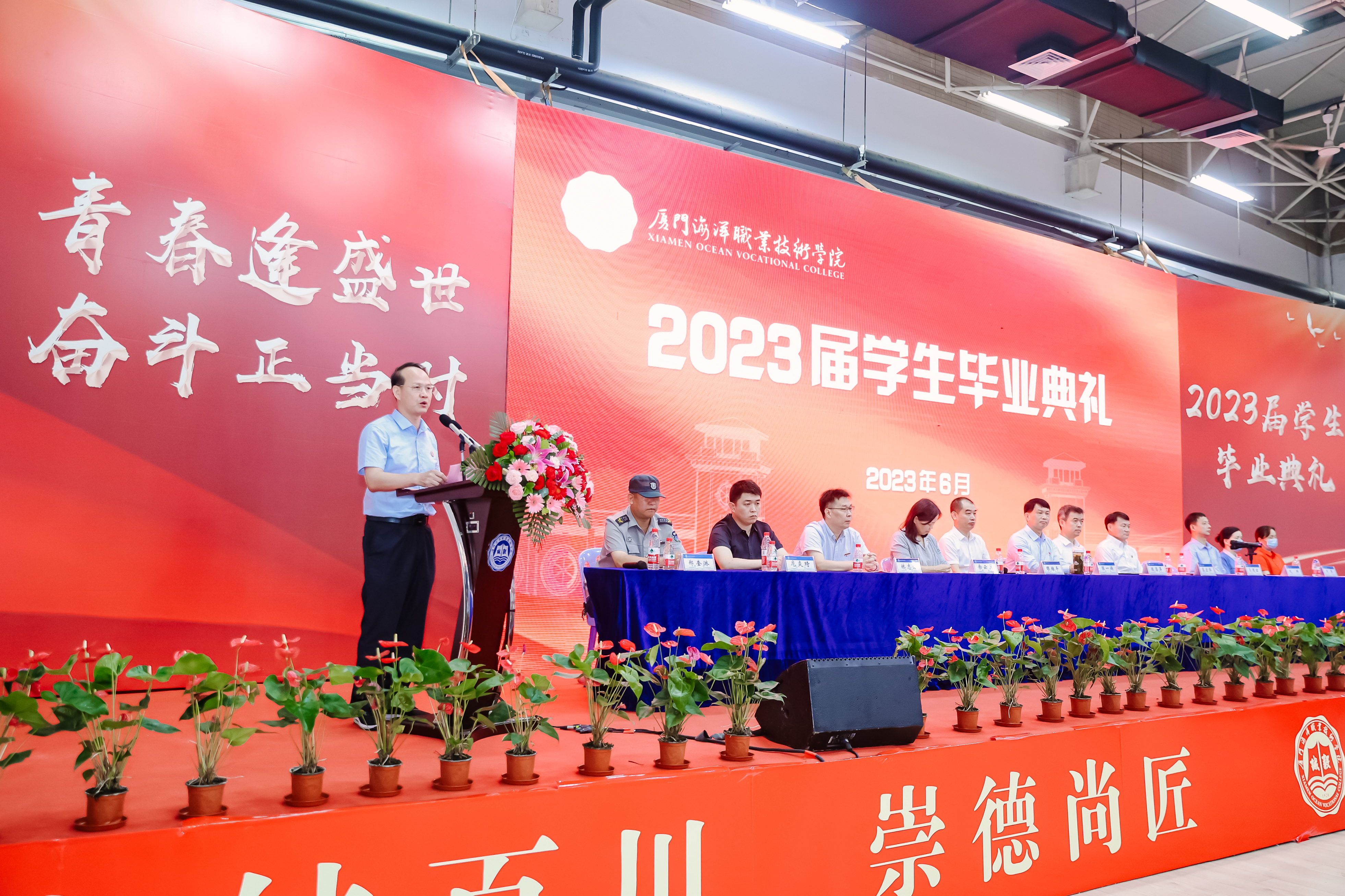 6月18日,我校在翔安校区体育运动中心举行2023届毕业典礼仪式,陈昌萍院长讲话,党委书记陈一端及在家校领导参加,党委委员、副院长马国玄主持。