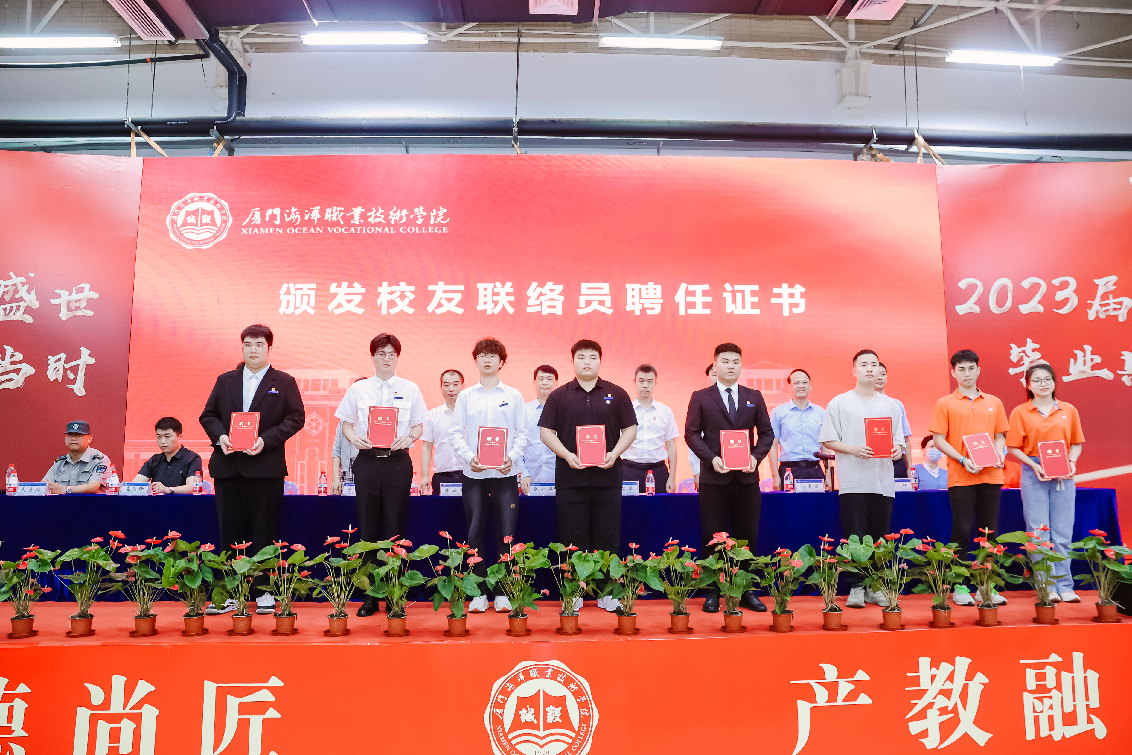 校领导为校友联络员代表颁发聘书。一声海院人,一生海院情,今年,学校共选聘了160名应届毕业生作为校友联络员,他们是连接母校和校友的重要桥梁和纽带。
