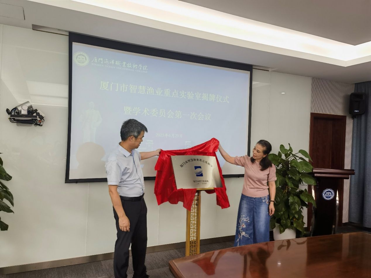 6月29日下午,我校举行厦门市智慧渔业重点实验室揭牌仪式暨学术委员会第一次会议,我校校长陈昌萍、党委副书记缪雄平出席。