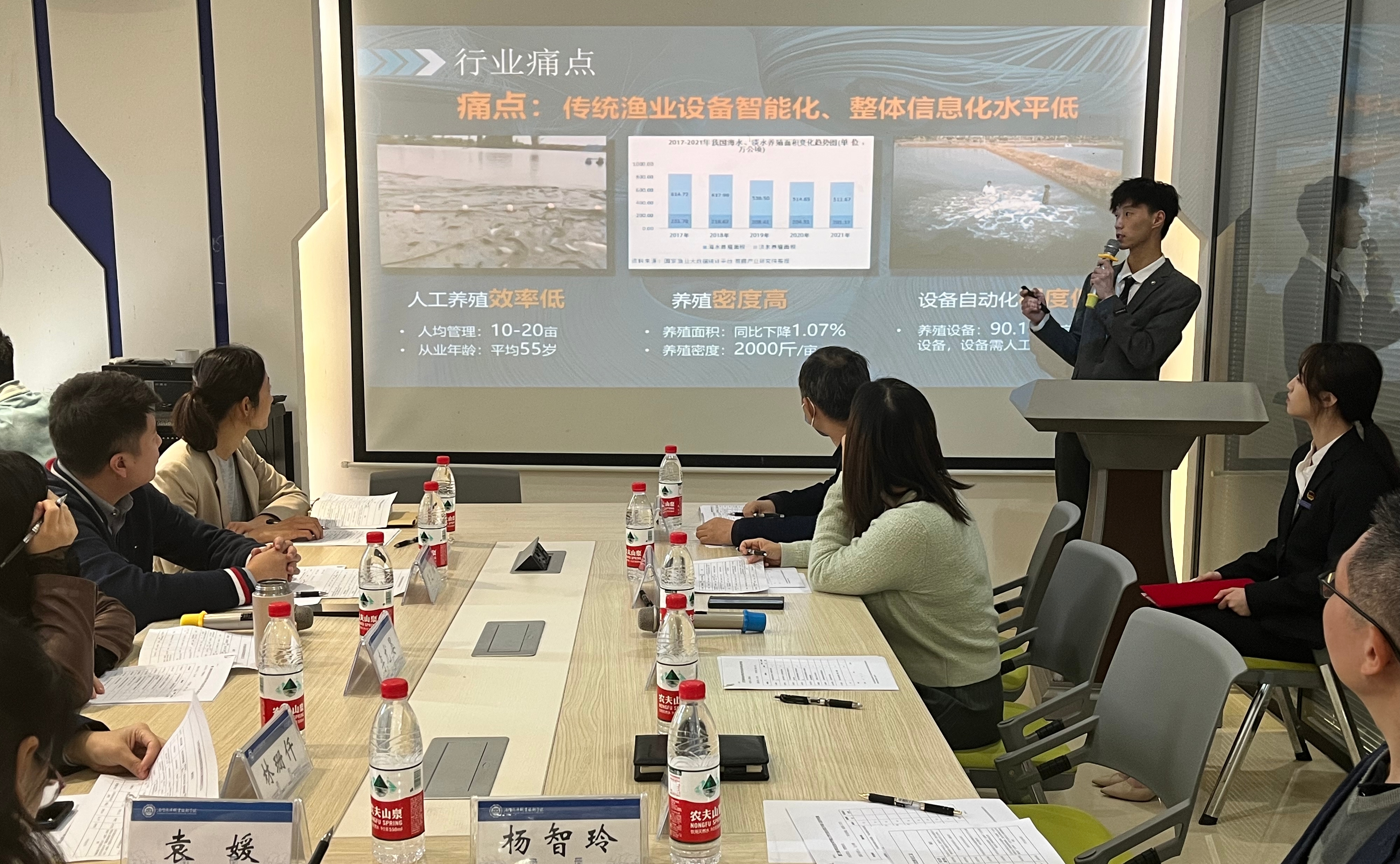 本次项目遴选通过网评评审和现场评审相结合的方式进行,邀请了校外专家、各二级学院创新创业工作负责人及就业创业处相关老师作为评审员。12支项目团队从市场运营、团队建设、特色优势、发展前景等方面进行展示,涵盖了工厂化循环水、福渔科技、鱼菜共生等海洋技术类创新项目以及电子商务、智能家居、短视频直播等创业类项目。
