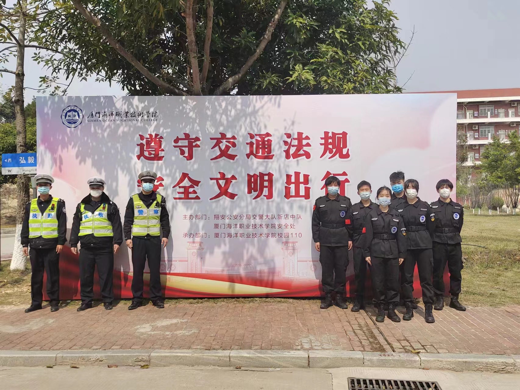 为进一步提升我校师生交通安全意识,维护校园交通安全与秩序,2月20日,我院与翔安区交警大队新店中队联合开展以“遵守交通法规,安全文明出行”为主题的校园交通安全宣传活动。我院党委书记陈一端,党委委员、副院长马国玄参加。