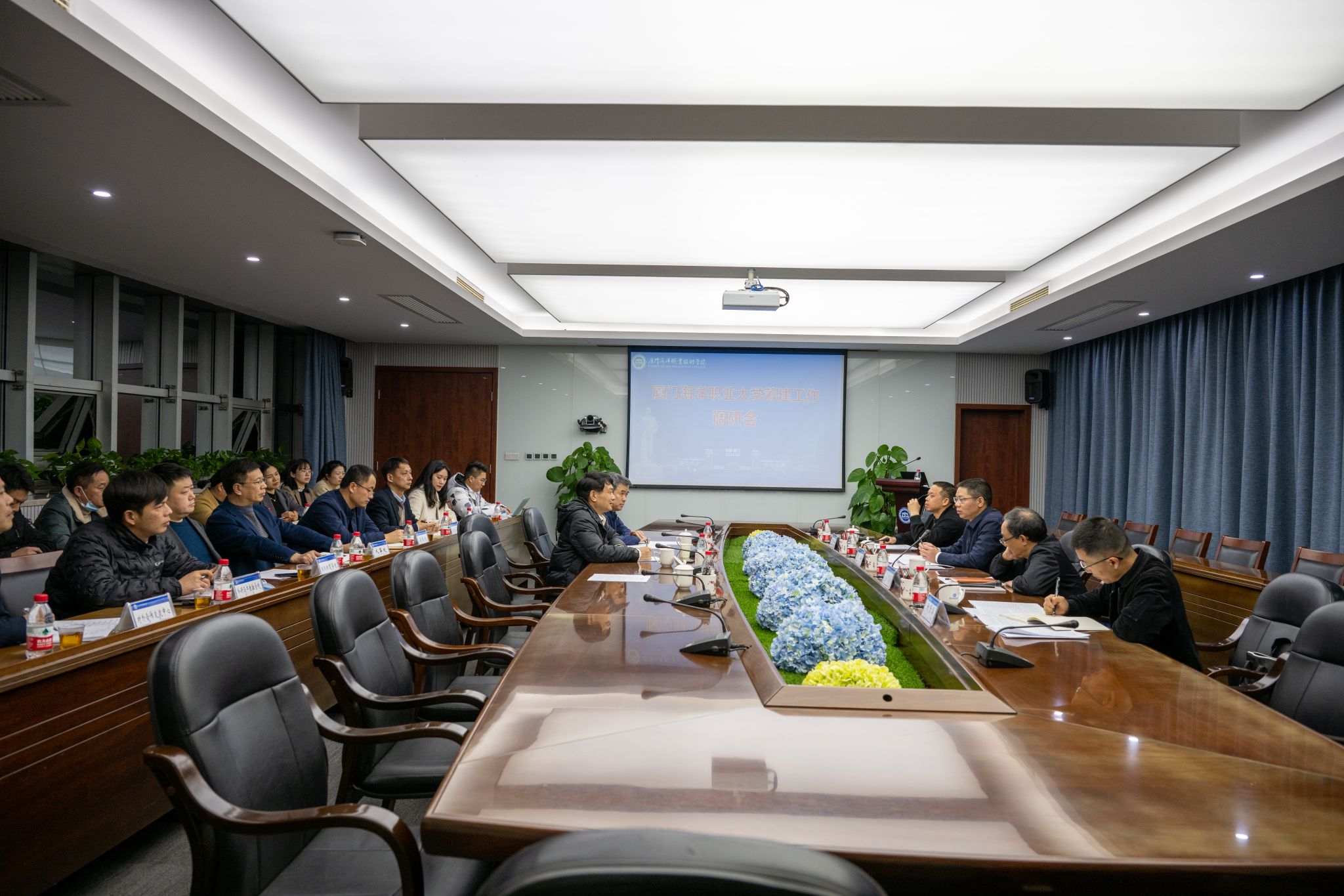 教育厅发展规划处处长吴吓凤、对外合作处处长周而明等陪同来访,我院党政办公室、发展规划与质量管理处、各升本指标建设部门和二级学院负责人参加调研交流。