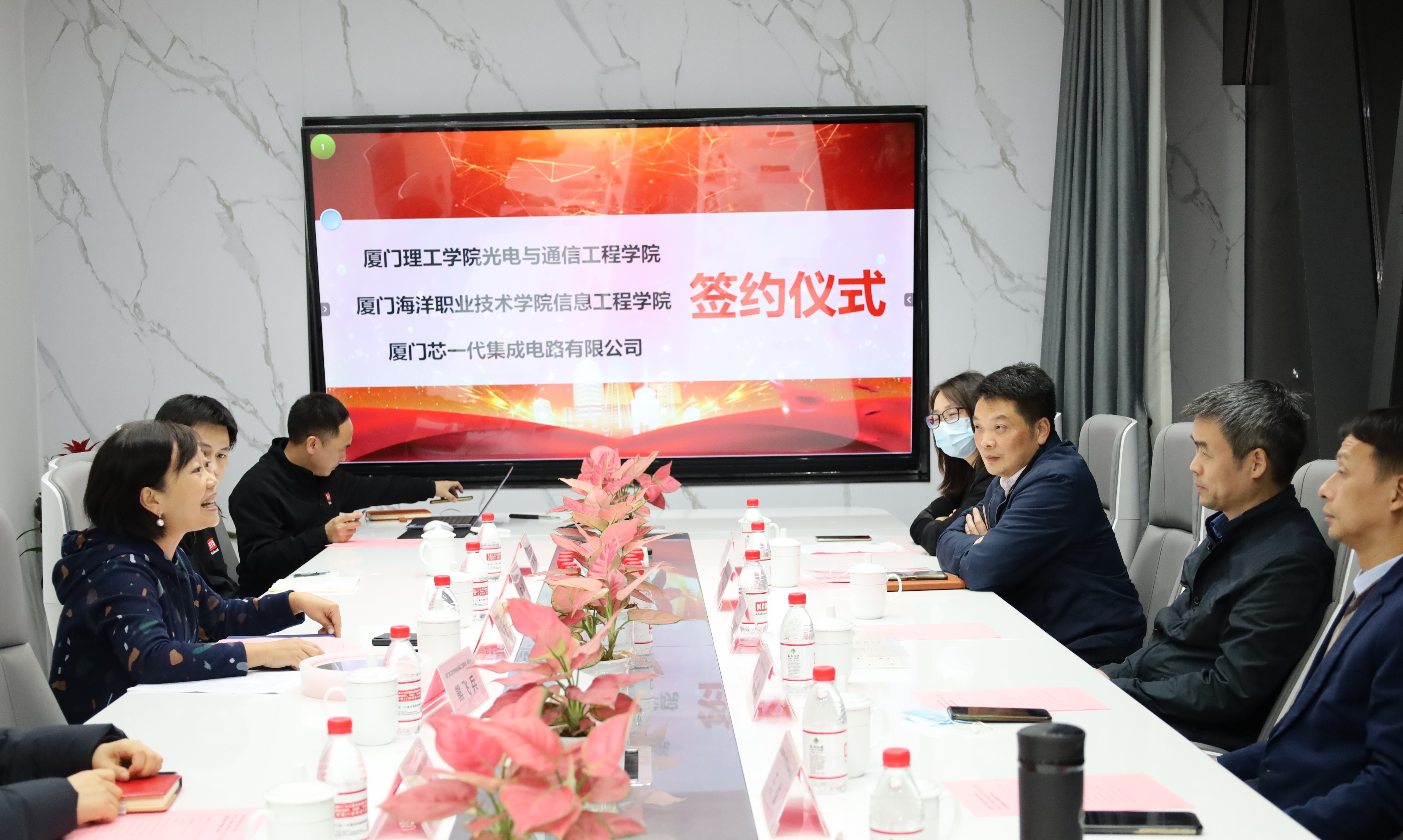 12月16日,我院信息工程学院与厦门理工学院光电与通信工程学院、厦门芯一代集成电路有限公司签署专业硕士学位研究生联合培养实践基地协议。院长陈昌萍出席签约仪式。