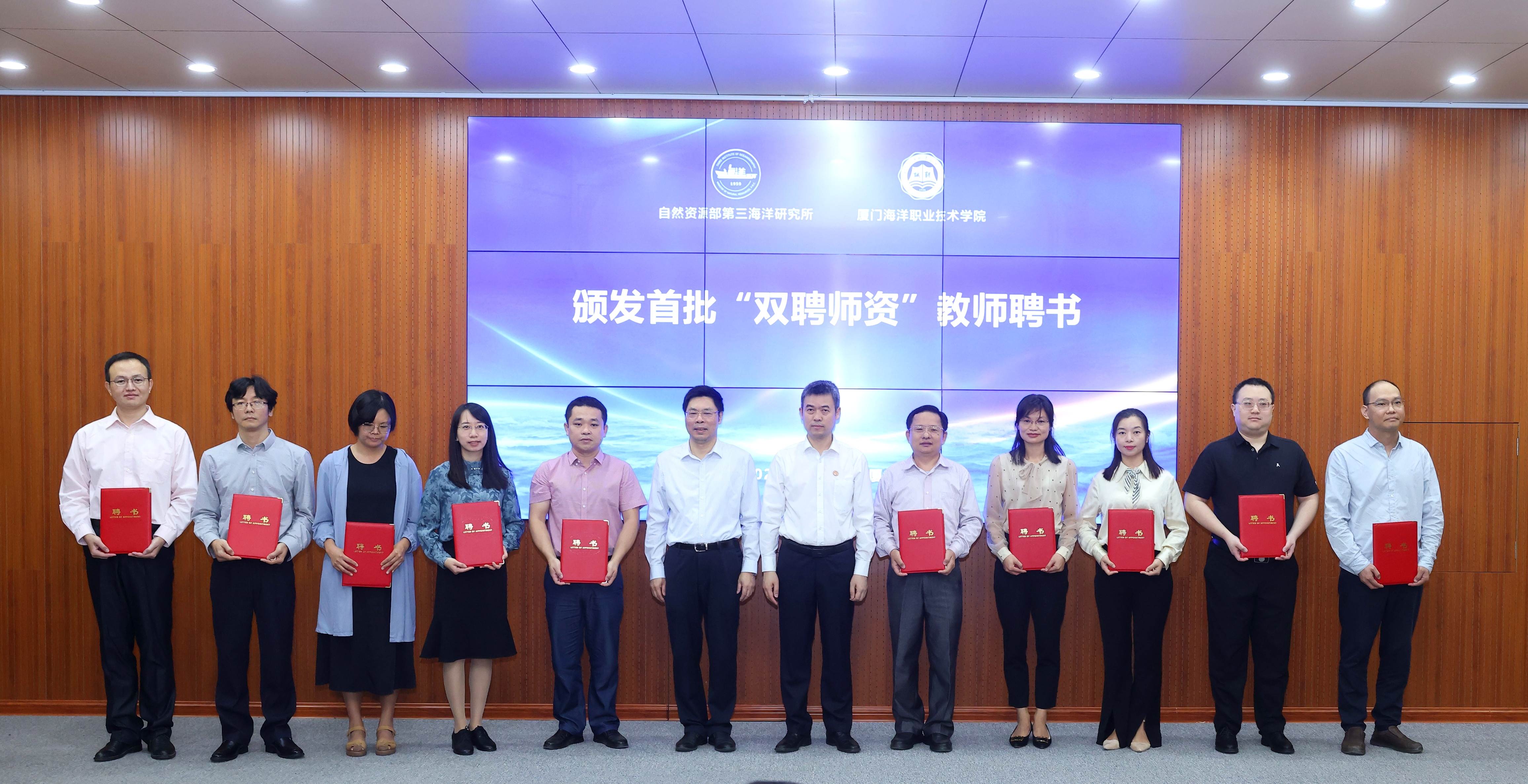 现场签署校所共同推进海洋大学建设合作协议、校所人才队伍建设合作协议、校所共建海洋生物产业化中试技术研发平台补充协议,为首批“双聘师资”颁发教师聘书。