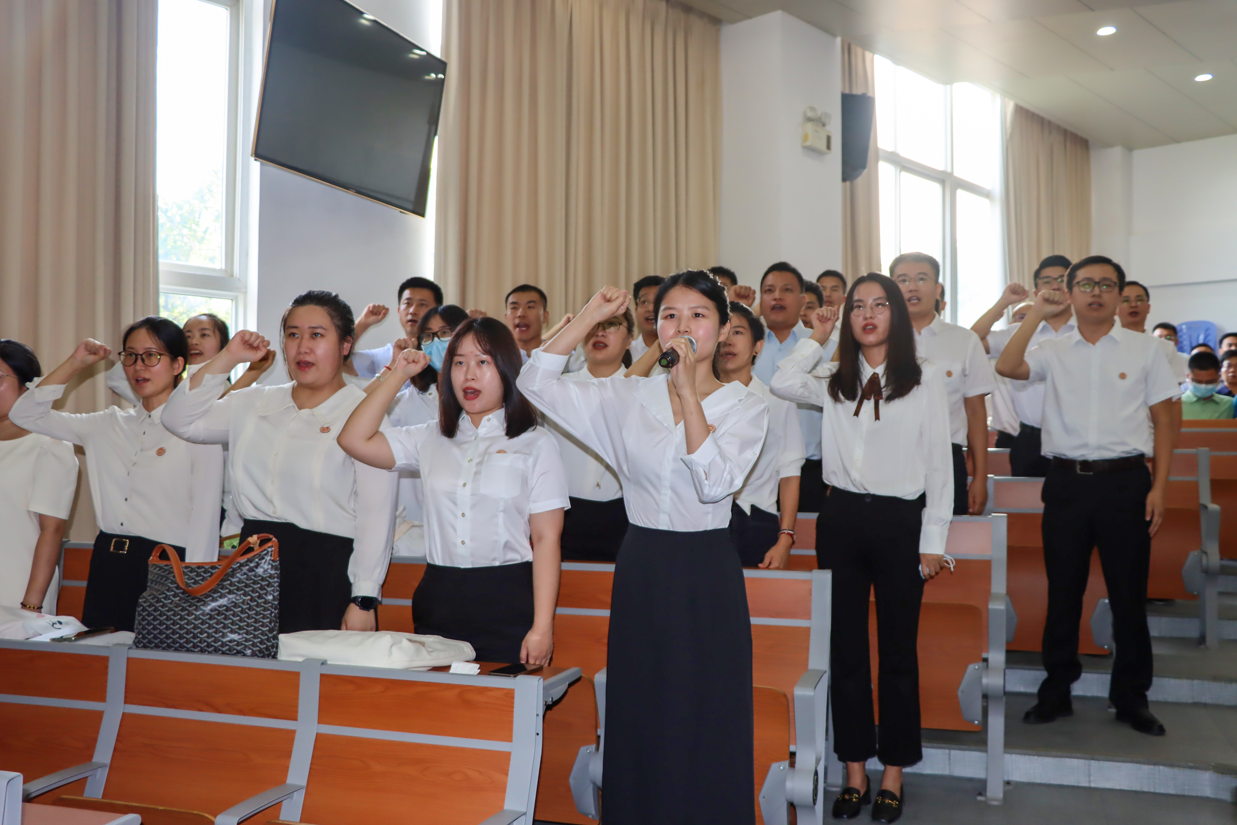 会上,40多名新入职教师代表集体立下誓言,将履行教师的神圣职责,为学生的全面发展奉献智慧力量,为党和人民的教育事业而努力奋斗。教师代表郭慧以“团队”、“思考”、“行动”为三部曲分享从教的心得与体会。学生代表在张斌颖、喻晓航老师的乐器伴奏下饱含深情地向全体教师献词,感恩教师辛勤付出。