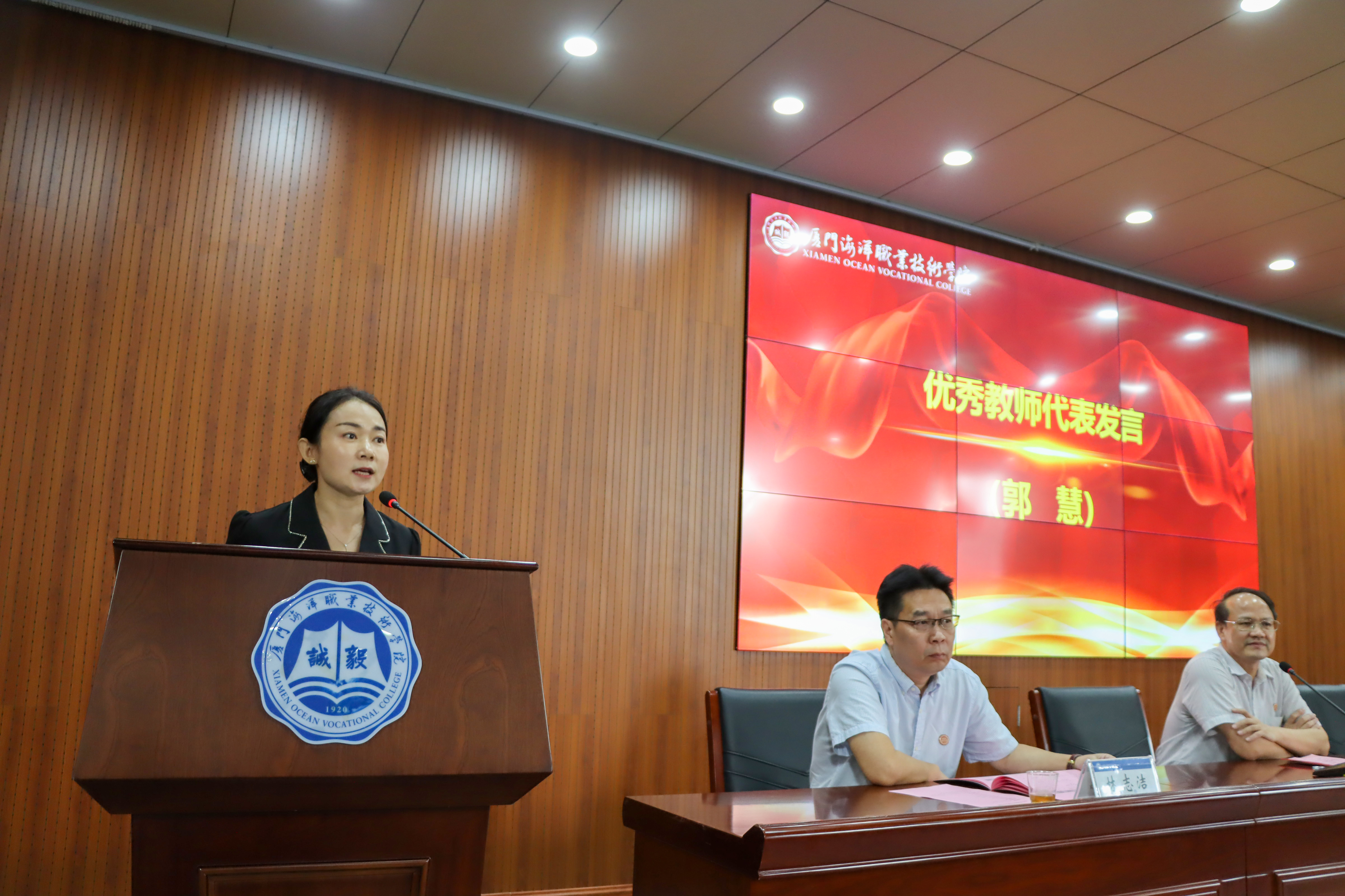 陈一端指出,过去一年,学校坚持党对学校工作的全面领导,成绩的取得凝聚着全体师生员工的心血和智慧,是师生齐心协力、共同奋斗、无私奉献的结果。他强调,高水平海洋职业大学已经进入实质性全面筹建阶段,学校将始终坚持教师的主体地位,坚定推进“人才强校”战略,继续稳步推进新时代教师评价改革,启动“嘉庚学者”计划,持续培育教学名师、专业带头人和创新团队等,充分调动广大教师的积极性、主动性和创造性,努力营造有利于潜心育人、静心科研的环境氛围,让海院成为广大教职工施展才能、增长才干、实现抱负的平台。