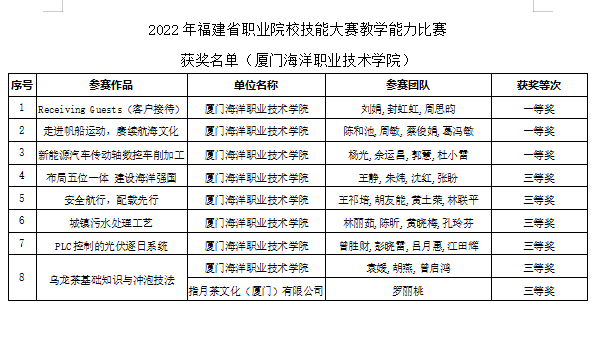 近日,福建省教育厅发布《关于公布2022年福建省职业院校技能大赛教学能力比赛获奖名单的通知》,我院喜获一等奖3项、三等奖5项,创历史佳绩。