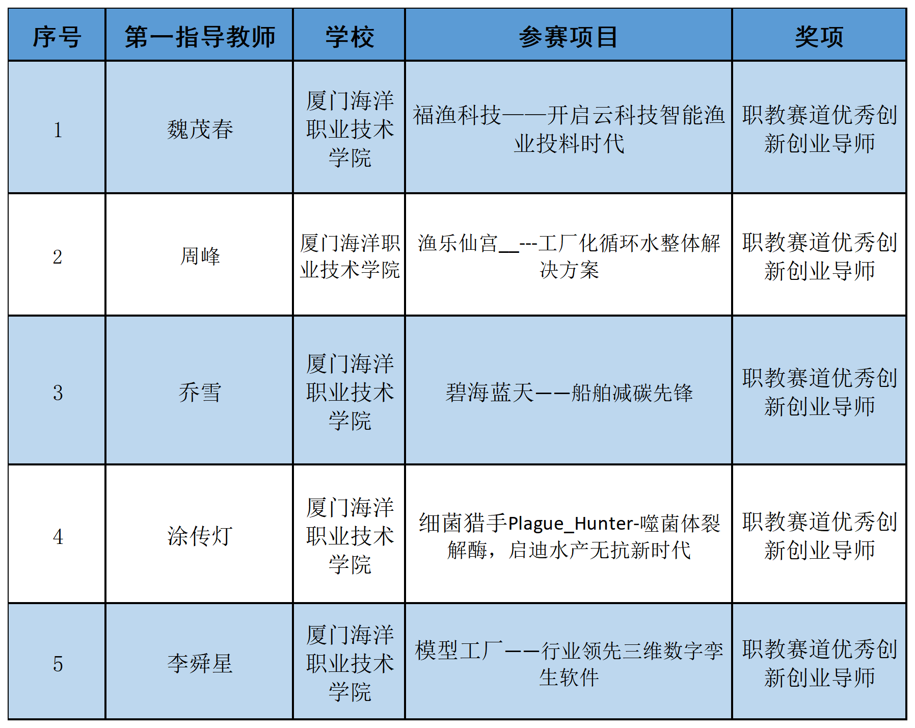 学校此次获奖项目将科技智能渔业、工厂化循环水、船舶减碳、智能货代等新技术与海洋经济各领域紧密结合,发挥互联网、科学技术在海洋产业、环保领域的作用,促进海洋产业转型升级,助力环保产业发展。