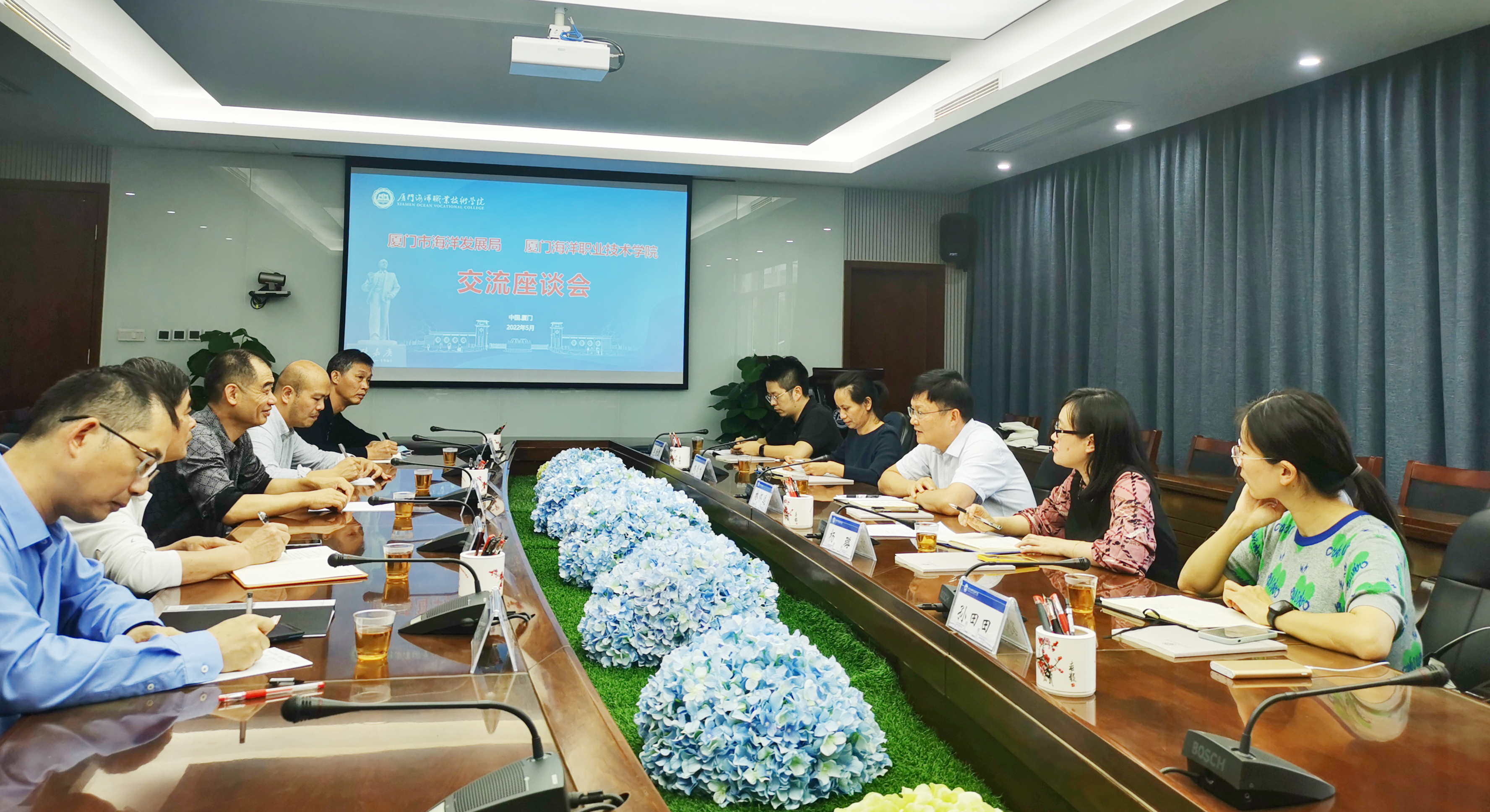 缪雄平介绍了当前我院筹建海洋职业大学、推进职教高地建设进程、海洋类国际交流合作中涉海类专业对外技术服务、校际合作、特色项目服务企业走出去、师生交流、招收留学生、一校一品“龙舟帆船”项目及闽台融合发展基本情况。