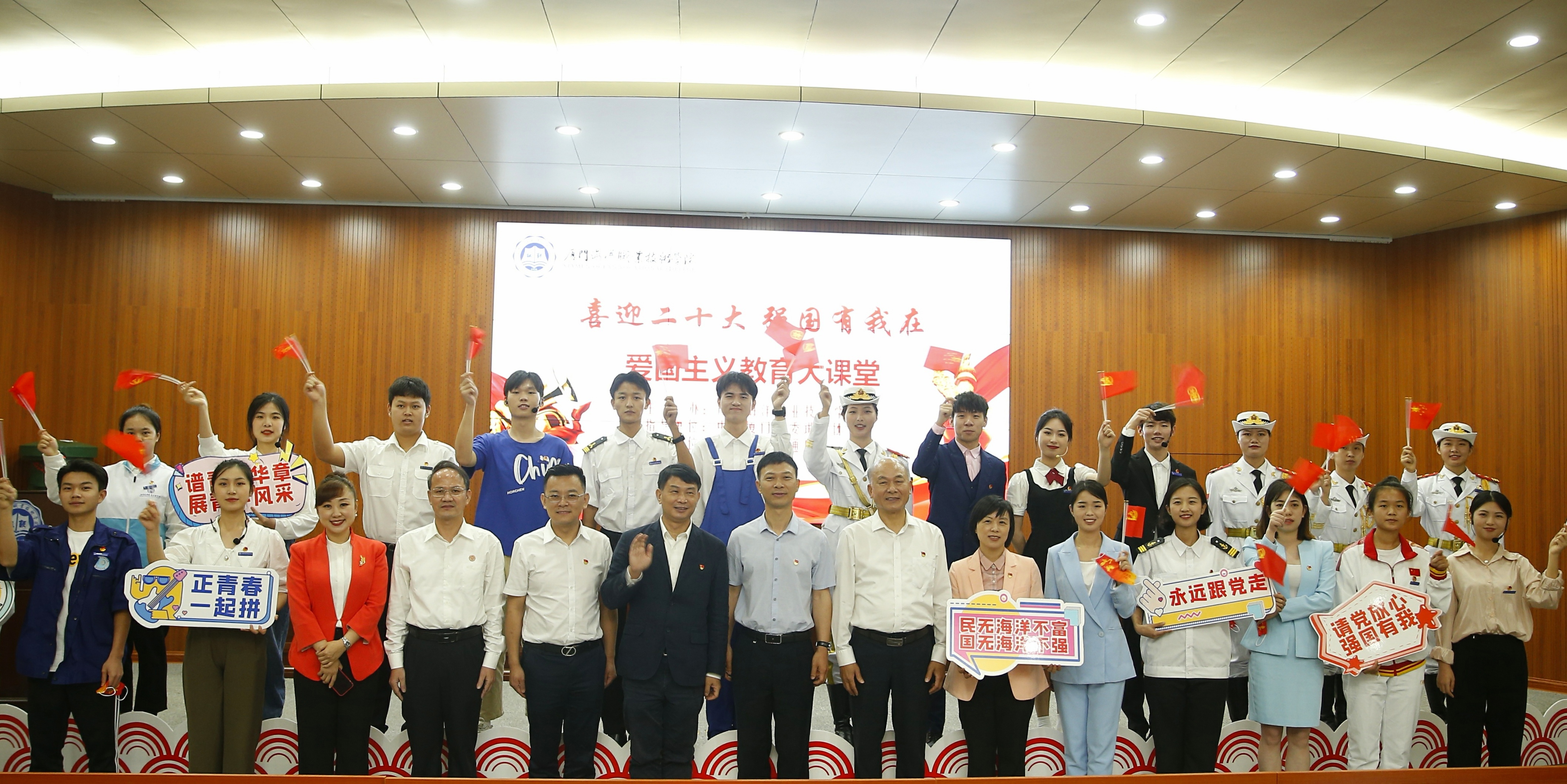 逐梦新百年,强国有青年。青年一代正处在中华民族发展的最好时期,国家的蓬勃发展为青年们提供了丰厚的发展资源和无限的发展可能。希望海院学子们自觉把人生理想融入到民族复兴伟业中,要努力成为堪当民族复兴重任的时代新人;要成为弘扬嘉庚精神,“深怀爱国之情,坚守报国之志”的新时代青年;要树立职业教育信心,立志技能成才、技能报国。