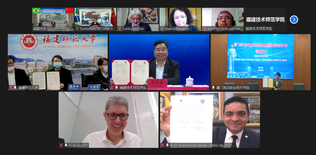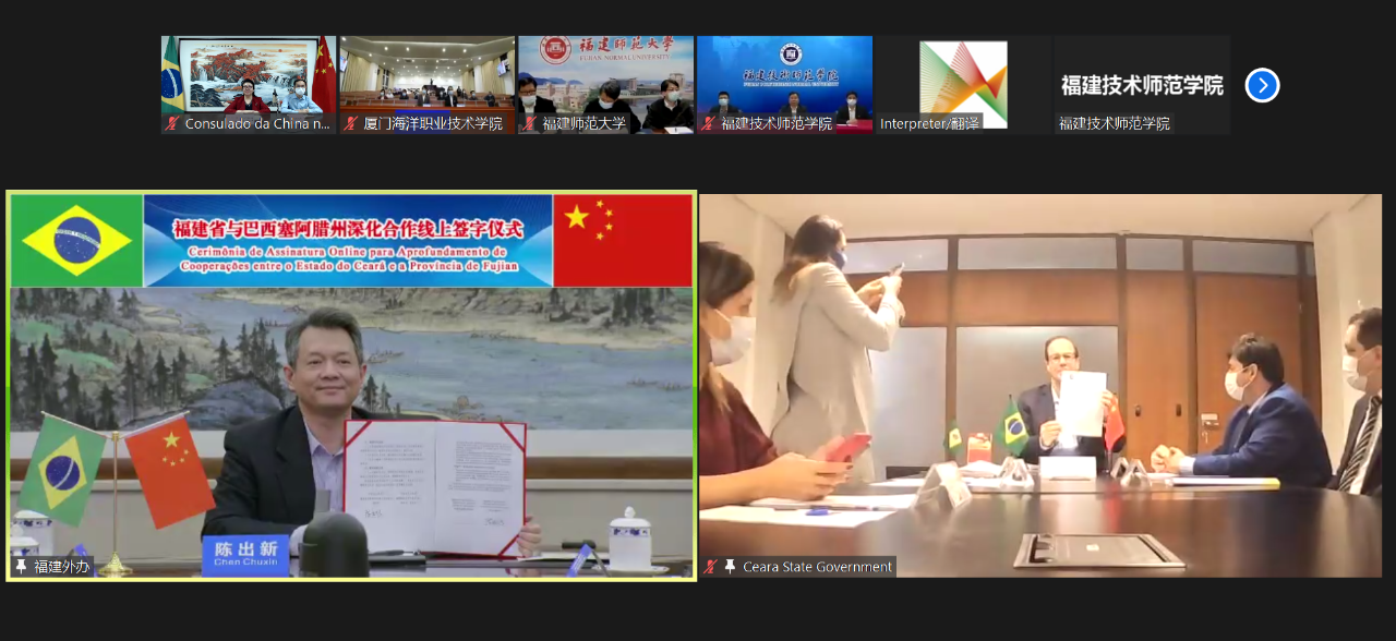 3月30日,福建省与巴西塞阿腊州举行深化合作线上签字仪式。会上,两省州签署《建立丝路伙伴关系备忘录》,我院与福建师范大学、福建技术师范学院在内3所省内高校同塞阿腊联邦大学、塞阿腊州立大学签署高等教育合作协议。