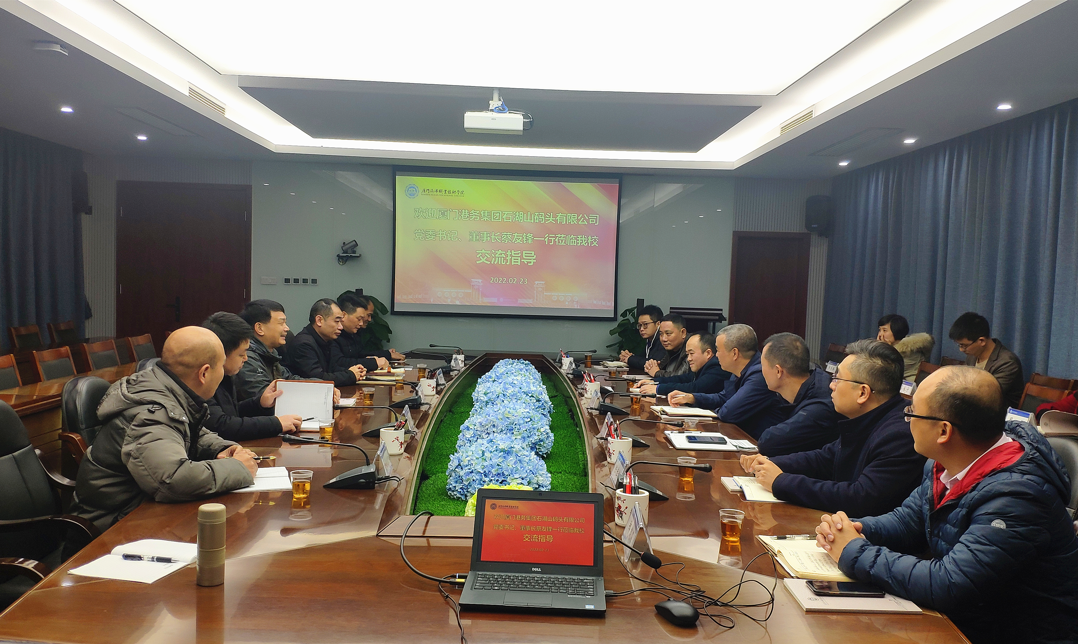 2月23日,厦门港务集团石湖山码头有限公司党委书记、董事长蔡友锋一行来校洽谈校企合作,党委书记陈一端、纪委书记缪雄平出席交流座谈会。