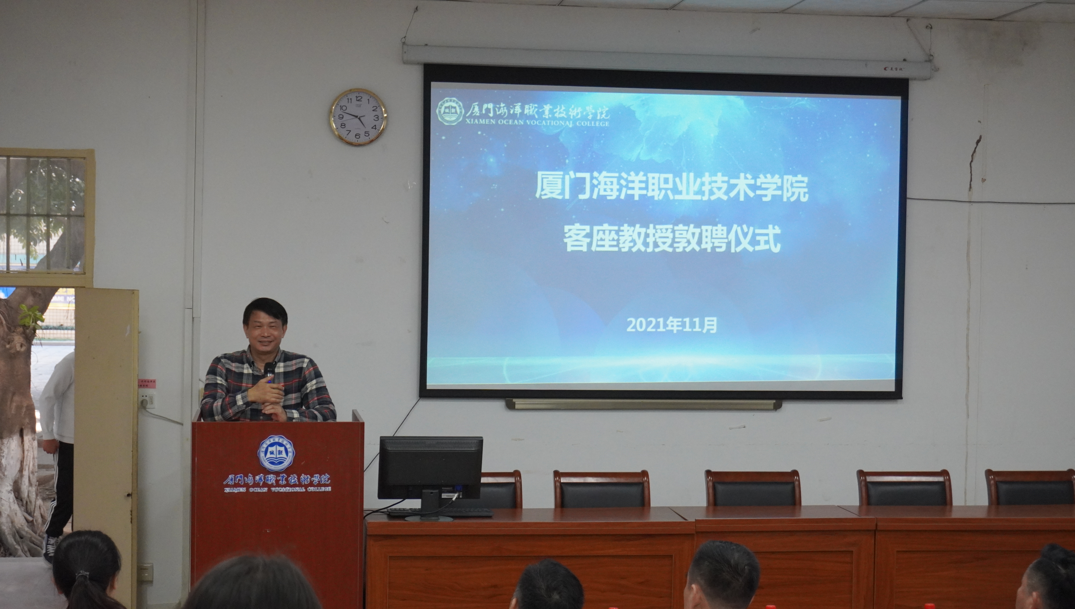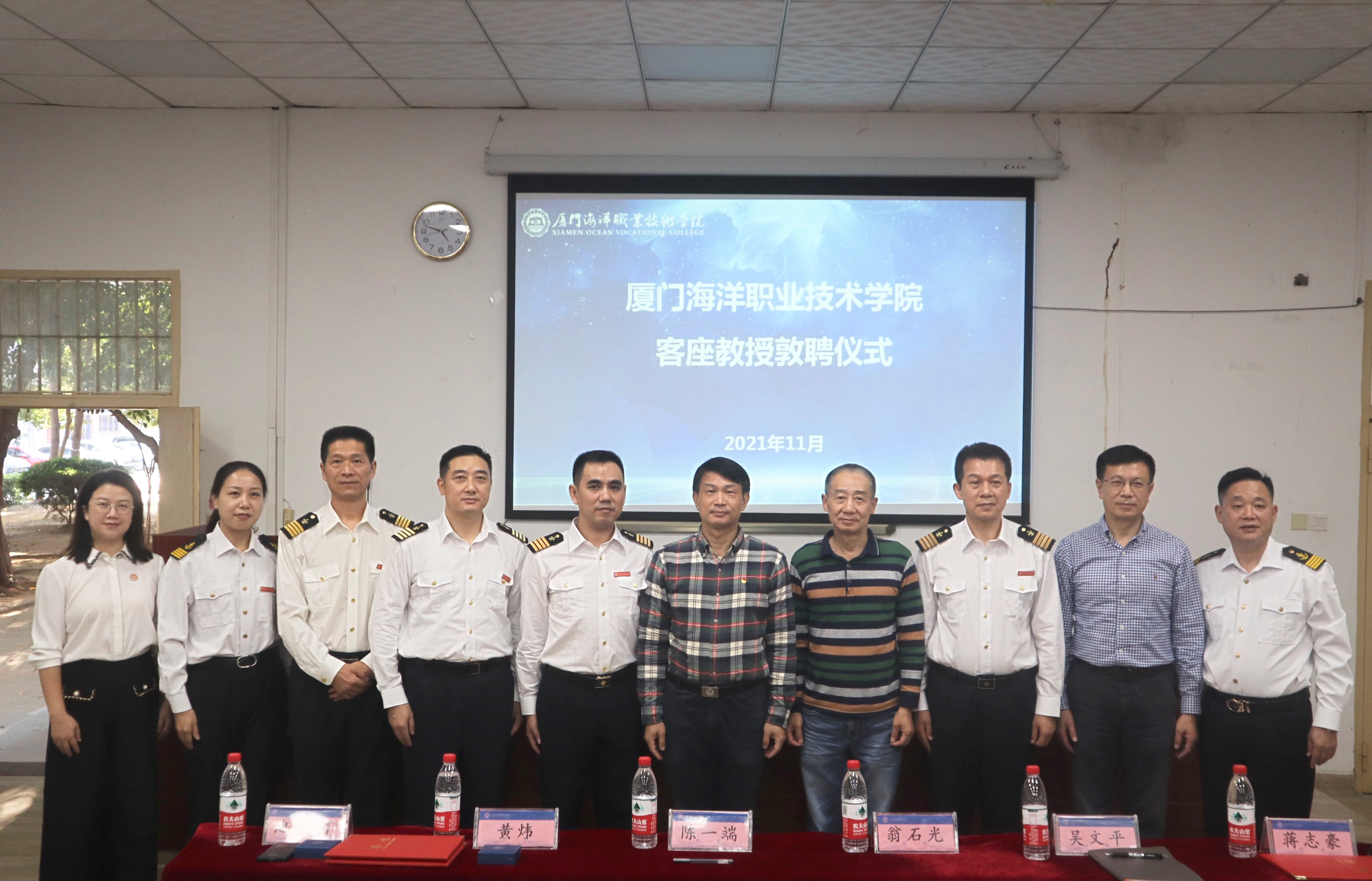 11月19日,我校举办敦聘厦门港引航站高级引航员张天从、徐力、黄炜、蒋志豪为客座教授仪式。校党委书记陈一端、副站长徐力、厦门港口管理局港航物流处原处长郑国政出席敦聘仪式。