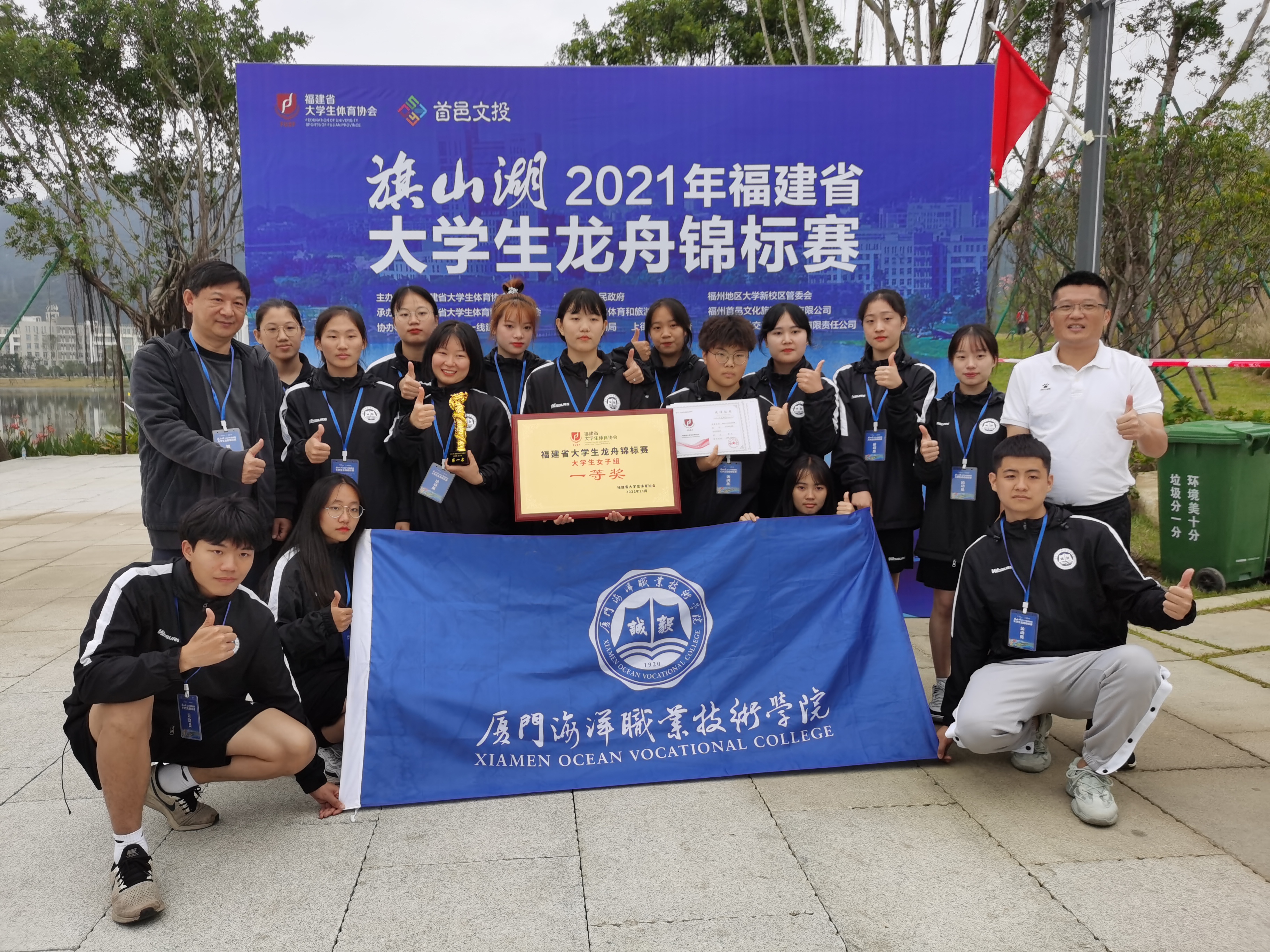11月26日-28日,2021年福建省大学生龙舟锦标赛在福州市旗山湖开赛。经过两天的激烈奋战,我校龙舟队获女子组冠军、男子组三等奖,许志良、庄亚民获“优秀教练员”称号。校党委委员、副校长、赛队领队孙学耕到场为队员们加油鼓劲,并作为嘉宾参加颁奖。