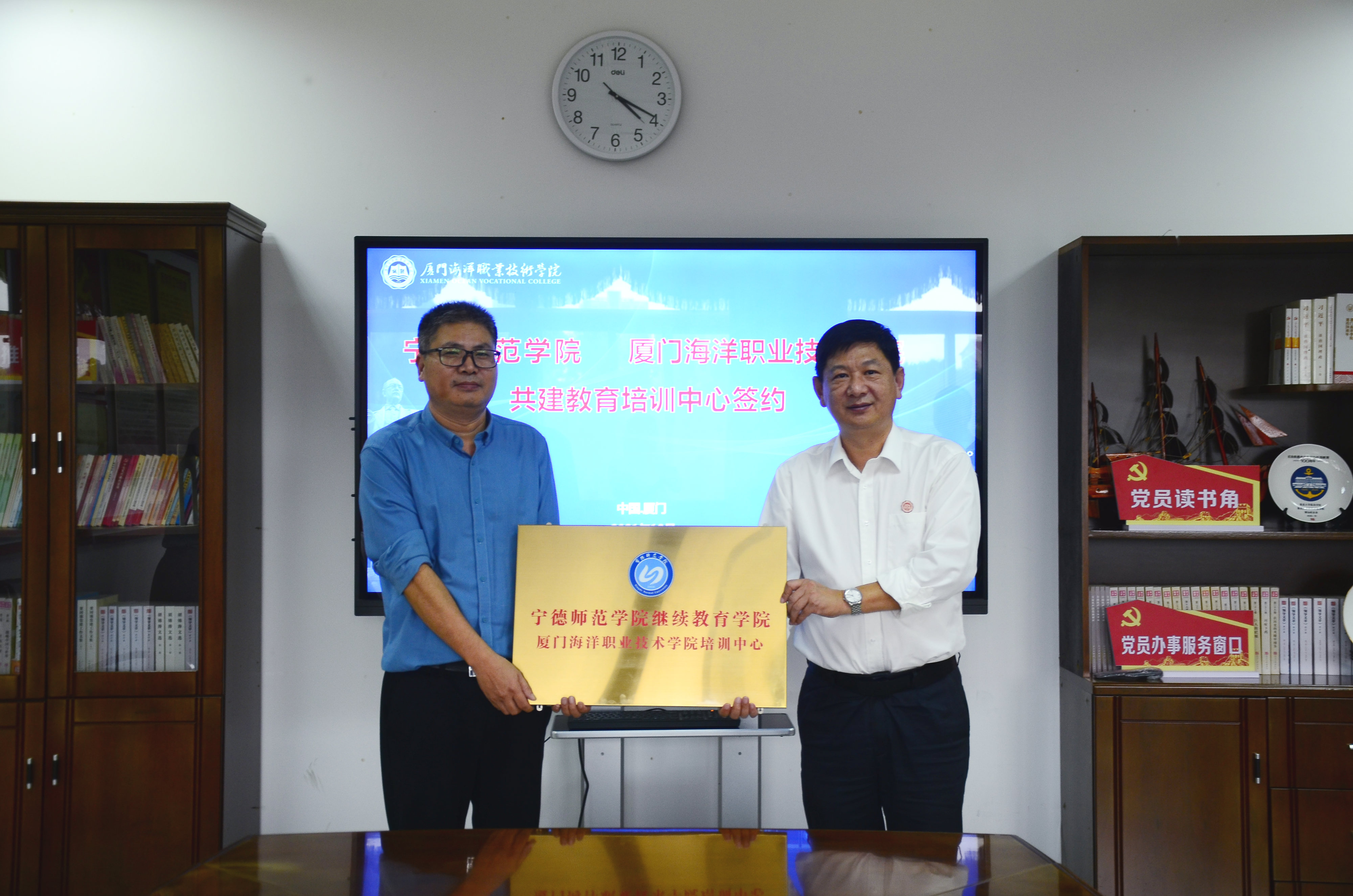 10月28日,我校与宁德师范学院共建教育培训基地签约仪式在翔安校区举行,宁德师范学院继续教育学院院长郑允贵、我校纪委书记缪雄平、副校长孙学耕出席活动。
