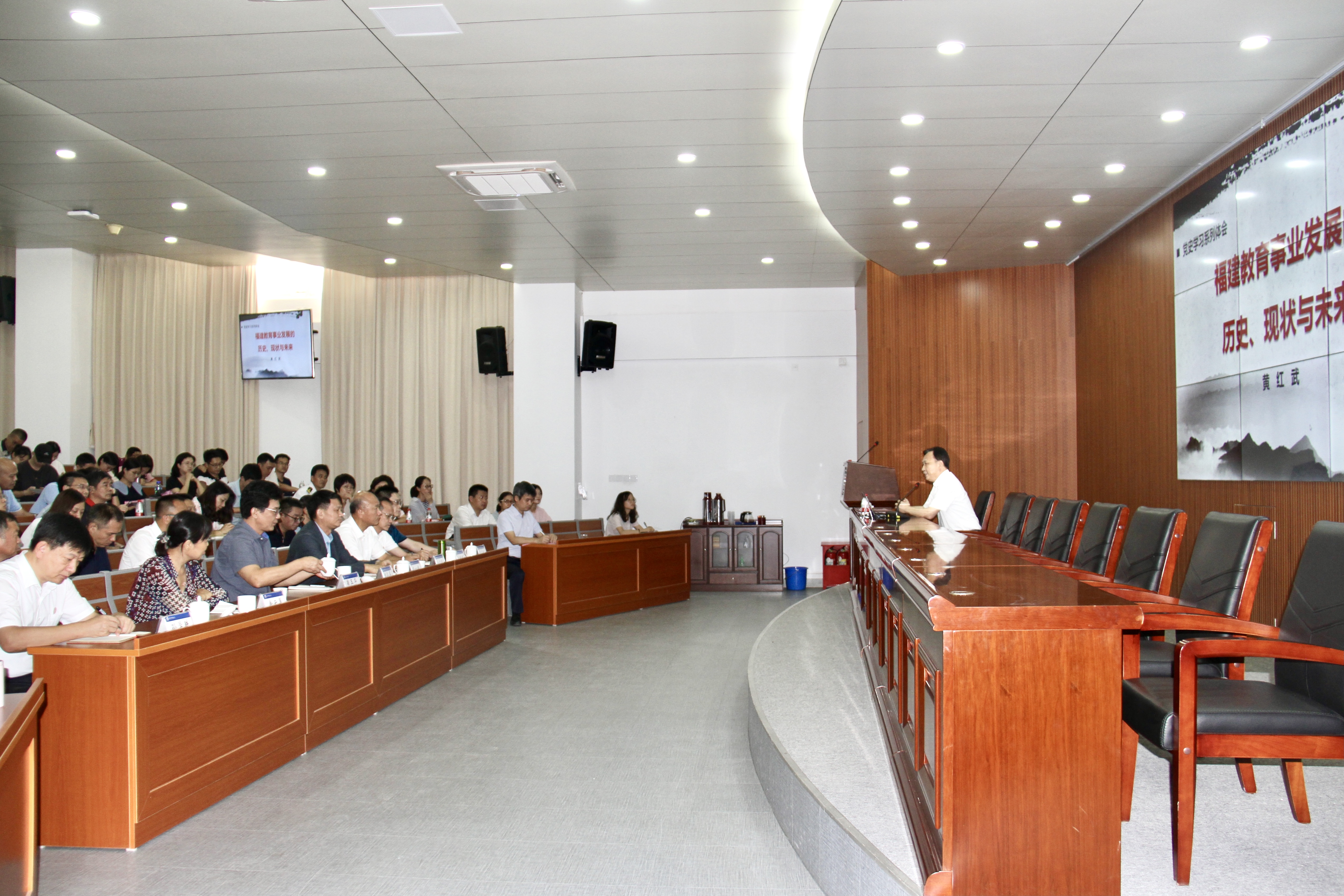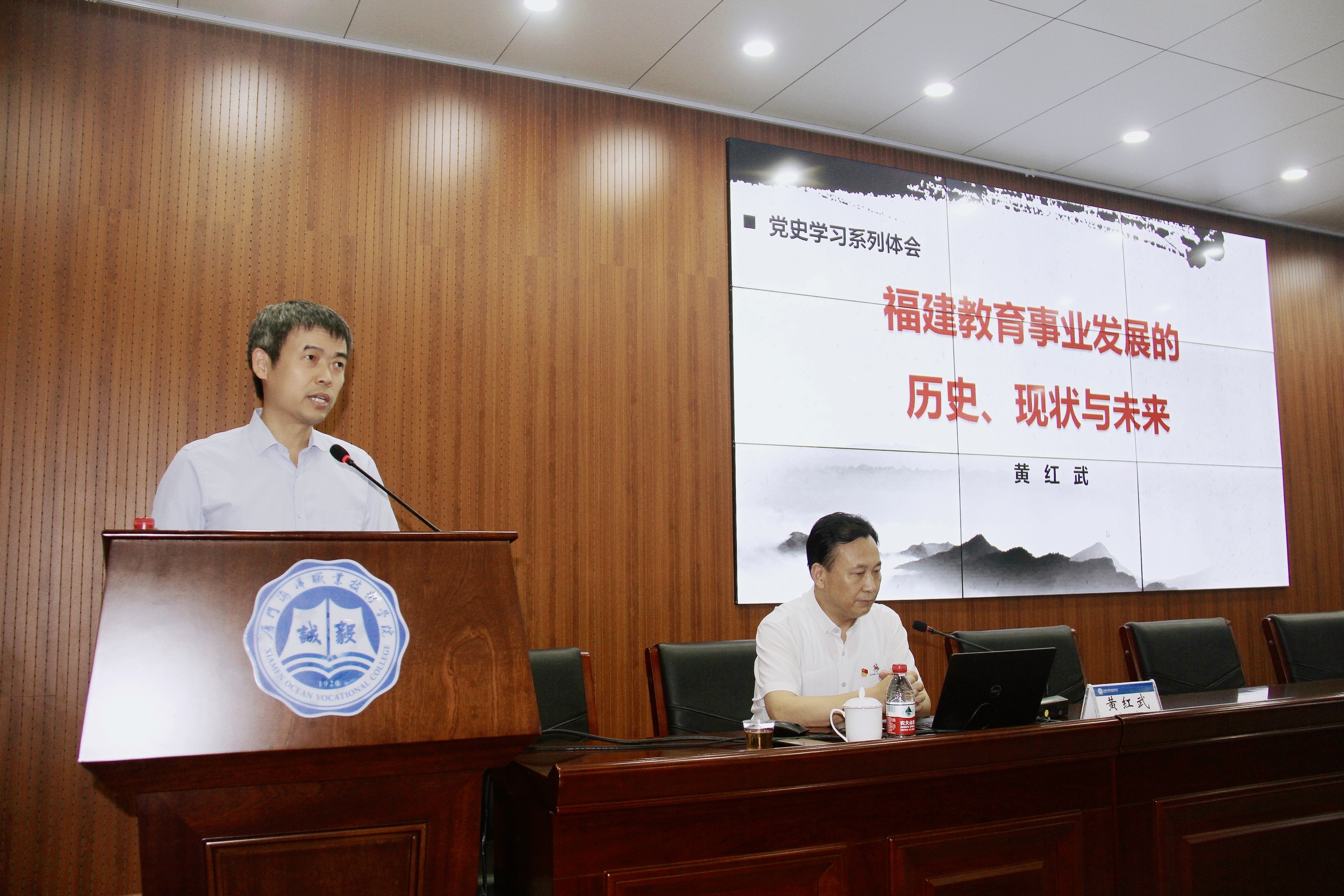 据悉,此次报告会是我校党史学习教育专题报告会之一,也是我校与厦门市中华职教社联合主办的“职业教育思想大讲坛”第三期报告会。学校全体行政人员、二级学院负责人、教师代表等参加。