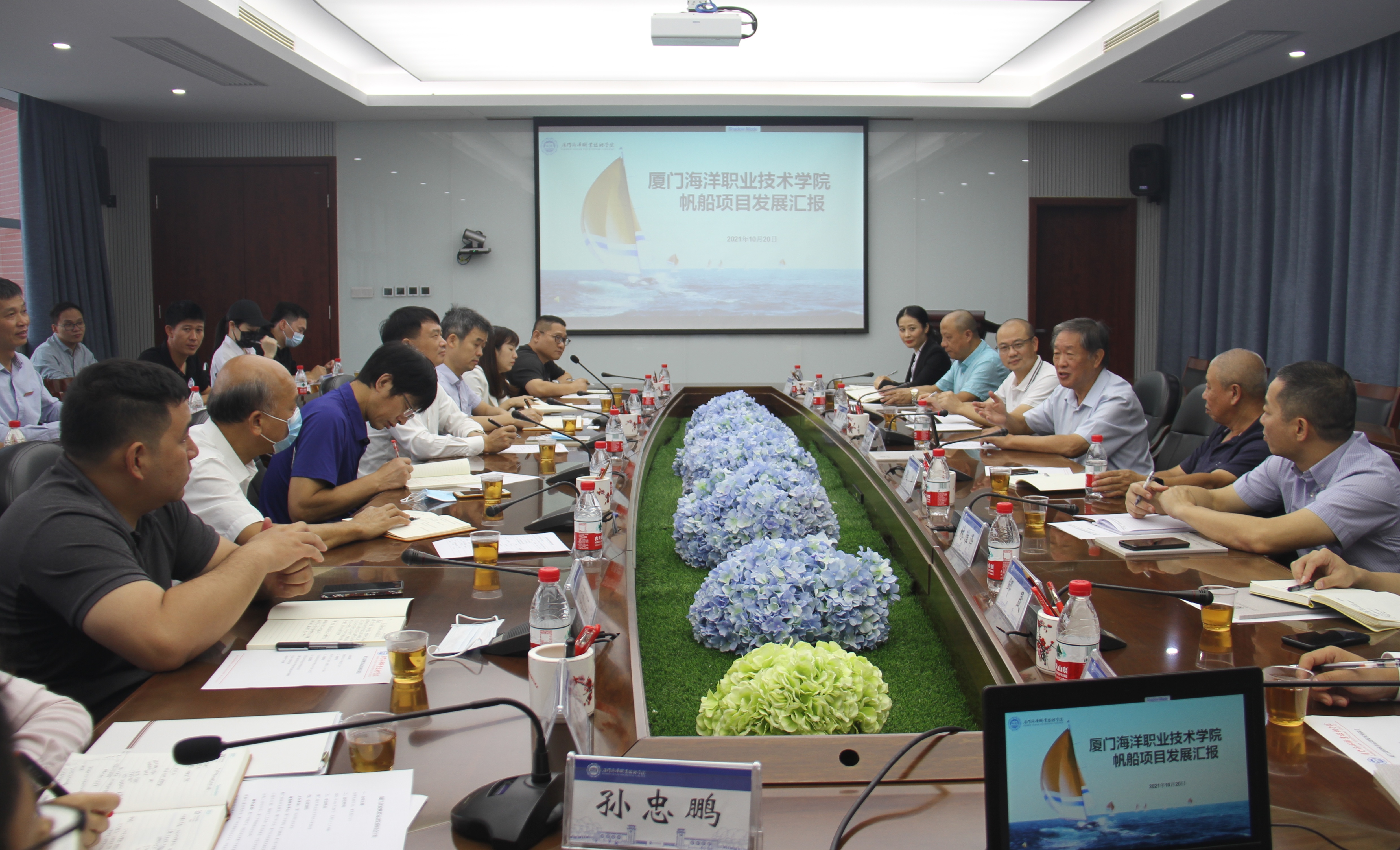 10月20日,厦门高校帆船运动发展座谈会在我校召开。厦门市政府原副市长、厦门市政协原副主席潘世建,中国帆船帆板运动协会执委、厦门市帆船游艇运动协会会长魏军,厦门市体育局产业处处长黄隆瑚出席会议。我校党委书记陈一端主持会议,校长陈昌萍,校党委副书记、体委主任汤忠民参加。