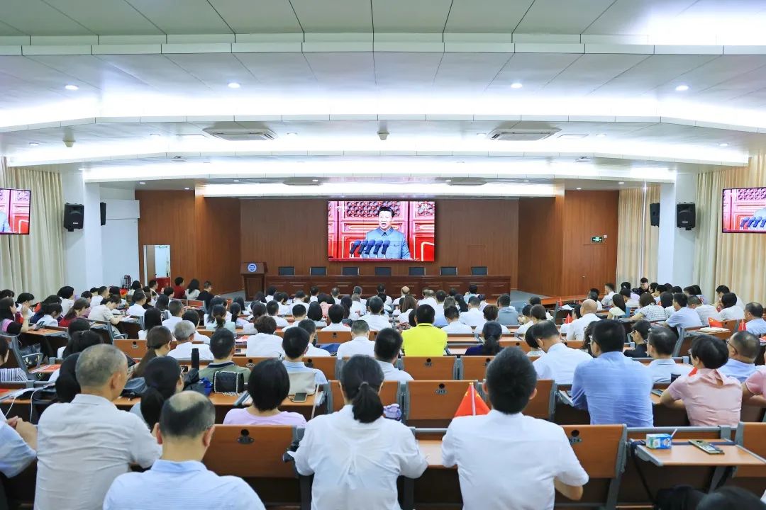 7日1日上午,我校组织师生集中收看中共中央庆祝中国共产党成立100周年大会现场直播。学校党政领导班子全体成员、各二级学院党总支党员代表、全体行政人员等200多人在翔安校区报告厅集中收看。各二级学院党总支结合自身实际设立分会场,认真安排并精心组织师生收听收看大会实况。