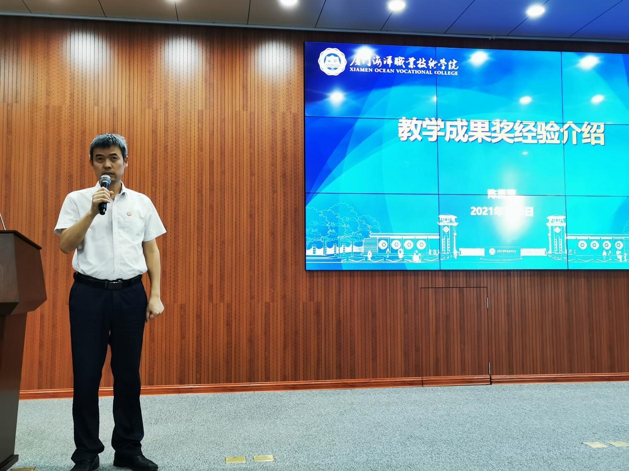 陈昌萍作教学成果奖申报经验交流,结合“基于知行耦合、四维再造的“三创型”蓝色工匠培育模式改革与创新”项目在省级教学成果奖申报过程中的选题、创新点、应用推广、答辩等环节做了分享,给与会教师带来了启发。