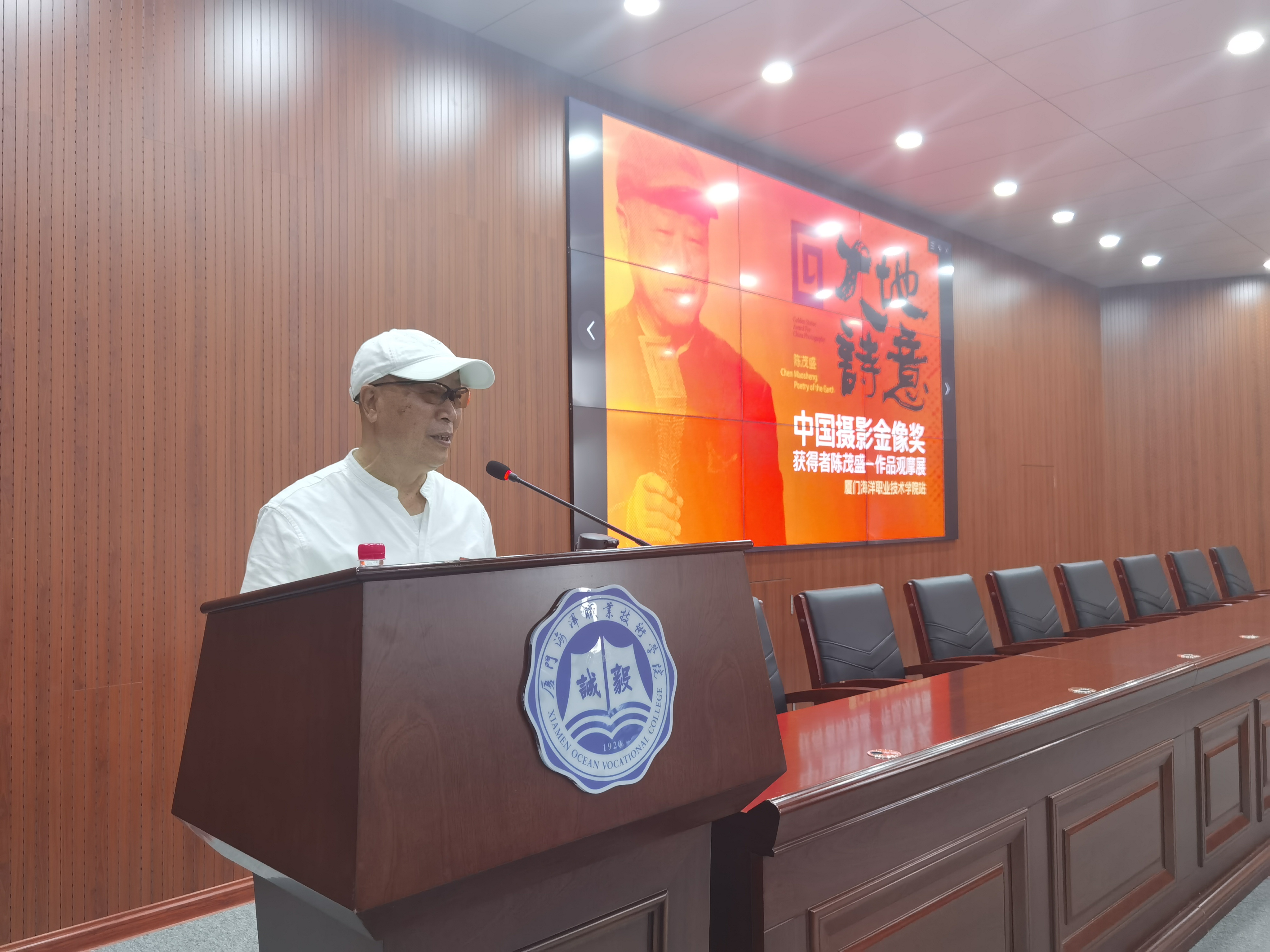 展仪式后,举行陈茂盛客座教授敦聘仪式暨专题报告会。报告会上,陈茂盛教授以《摄影之路没有终点,只有起点》为题,从“选择航拍,换个角度看美丽的地球;爱上航拍,每一次创作都是在冒险;痴迷摄影,超越自我,砥砺前行;不忘初心,敬畏自然,爱护地球”四个方面分享了自己的创作历程,从摄影器材、航拍角度和艺术魅力等方面,详细讲解如何捕捉到满意的摄影作品。