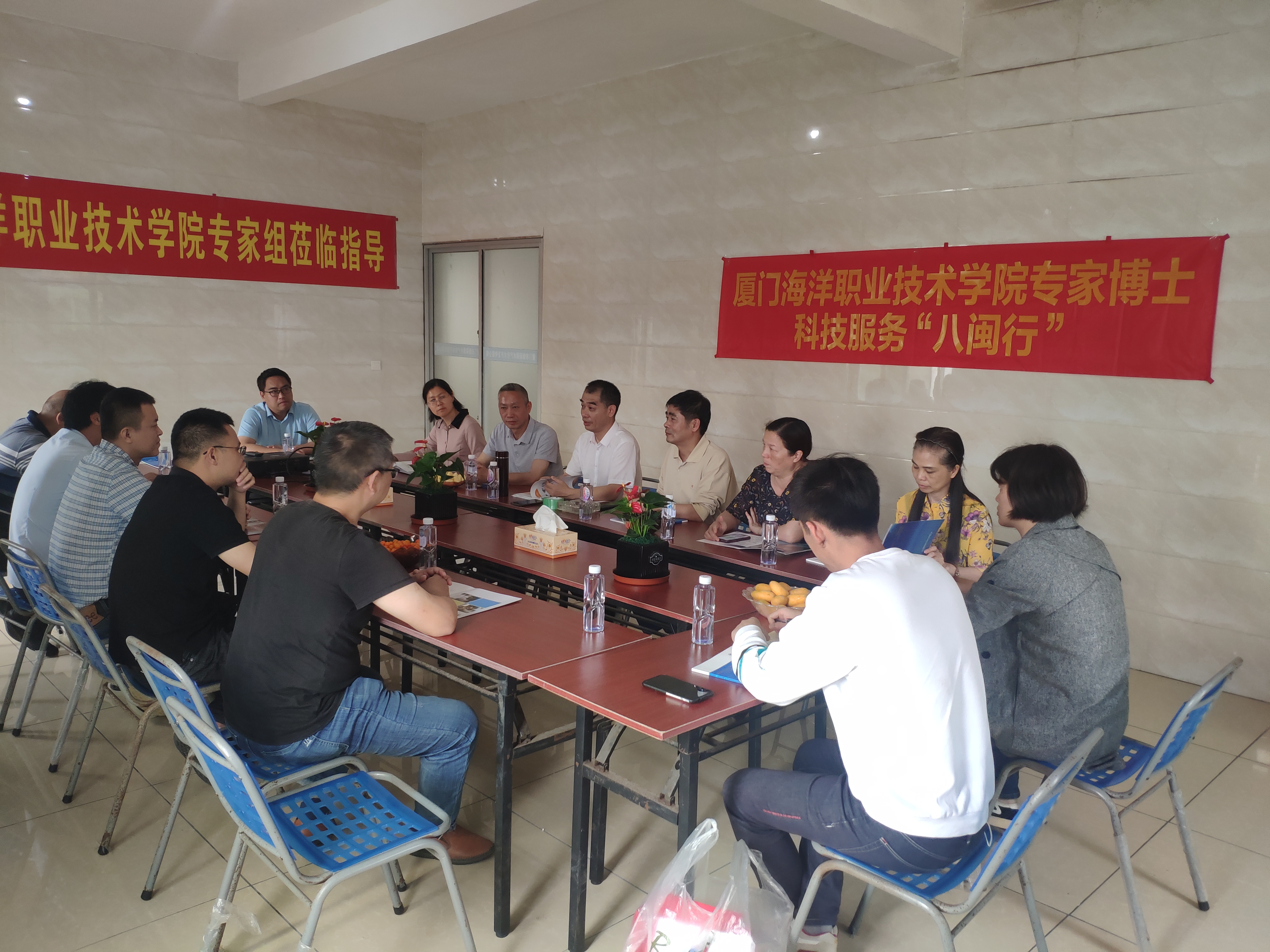 在厦门海约生物有限公司,服务团成员为企业在生物制剂发酵、生物水质改良剂等方面存在的技术问题提供解决思路,与企业就标准化检测化验实验室共建达成合作意向。在厦门市新荣腾水产技术开发有限公司、厦门市和盛优选水产科技有限公司,专家博士团队对企业就国内外选种育苗、养殖尾水治理和环境污染等技术难点进行调研,为企业梳理水产养殖、苗种生产实验标准化流程。
