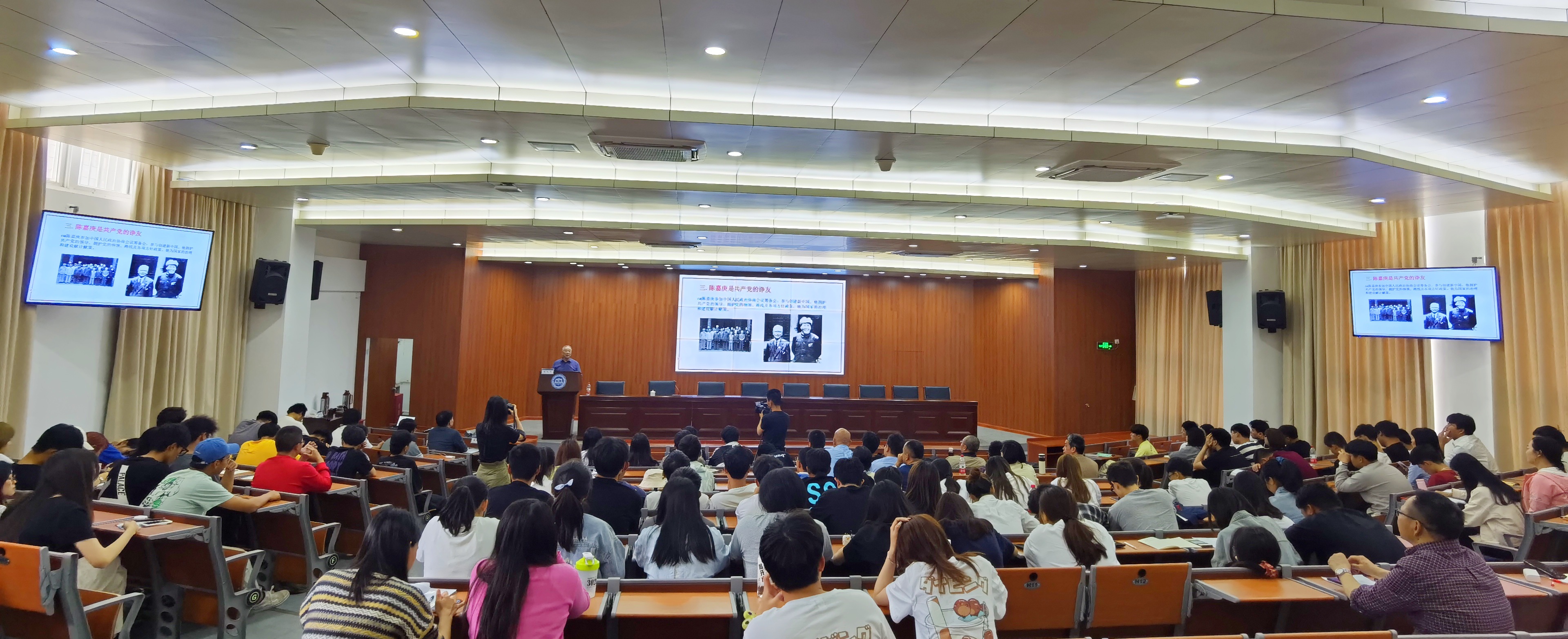 讲座中,陈经华教授围绕“到延安前陈嘉庚对中国共产党的认识”“延安之行使陈嘉庚认定中国的希望在延安”“陈嘉庚是共产党的诤友”“鳌园是陈嘉庚心向共产党的真实记录”等内容向我们介绍了陈嘉庚先生和中国共产党赤诚交往的故事。耄耋之年的他全程站立、脱稿为师生讲授,用情至深,感染在场所有师生。