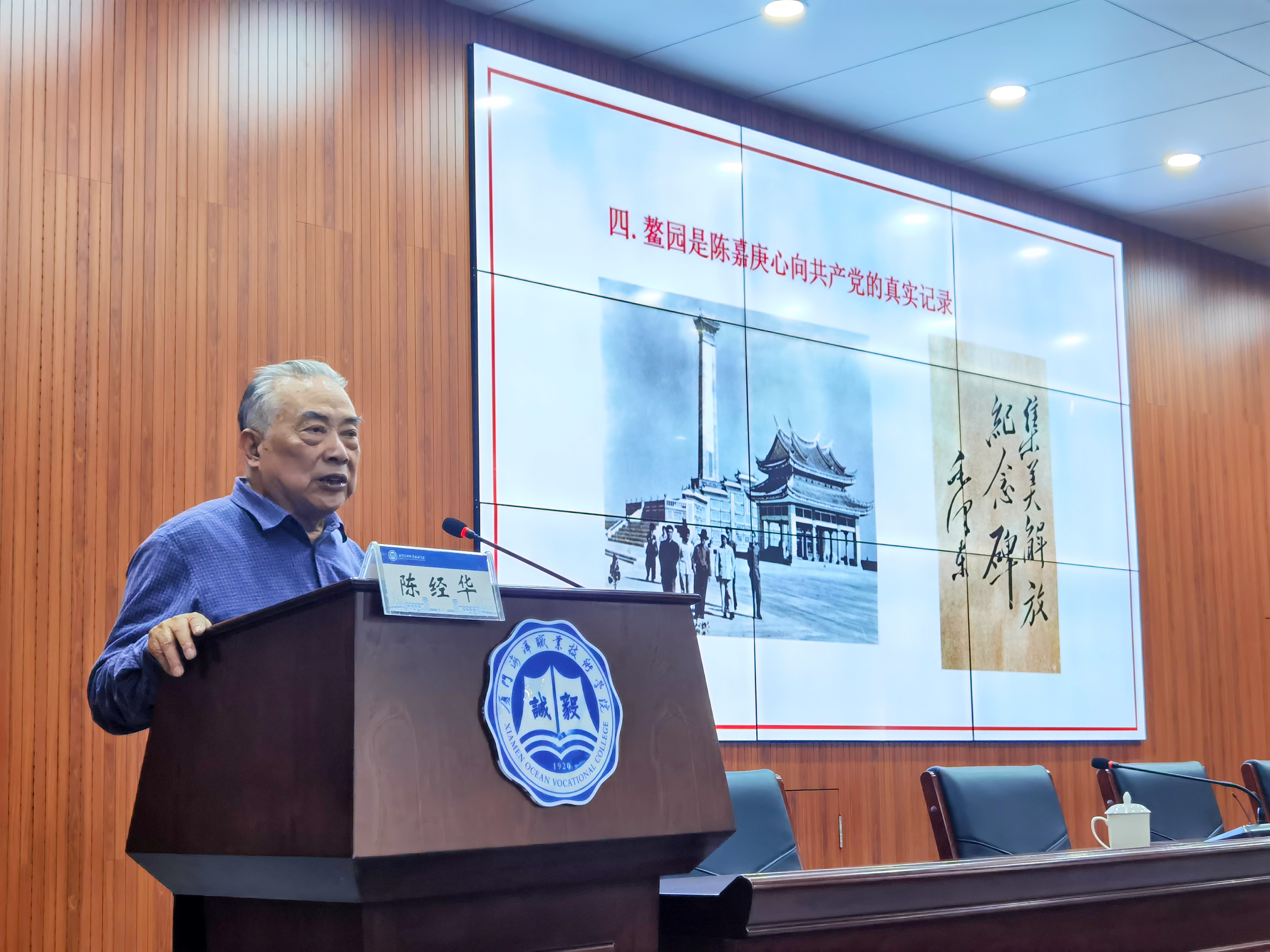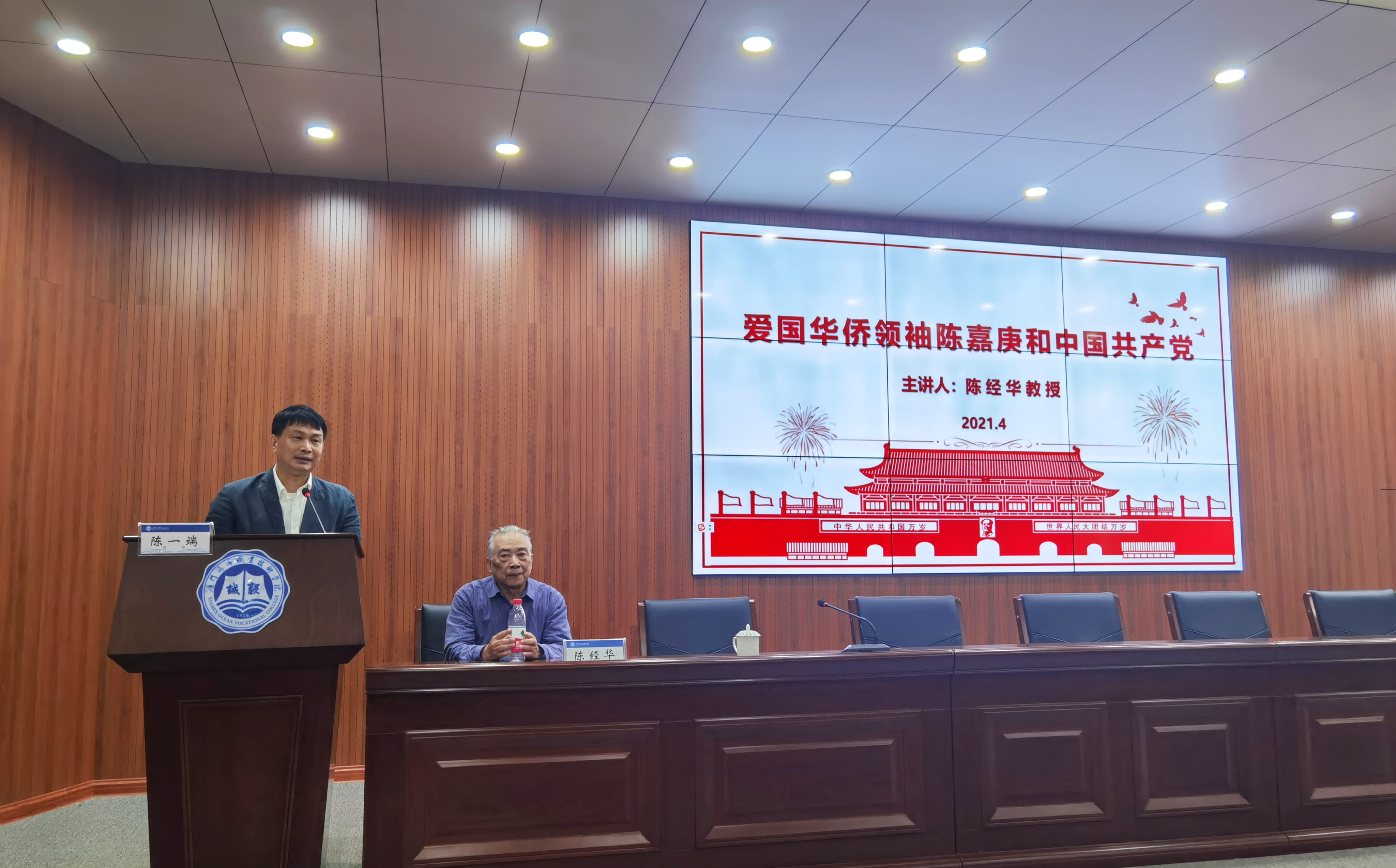4月20日,集美大学退休教授、《集美校友》杂志原主编、集美陈嘉庚研究会原副会长陈经华到我校开讲《爱国华侨领袖陈嘉庚与中国共产党》。校党委书记陈一端出席并主持。