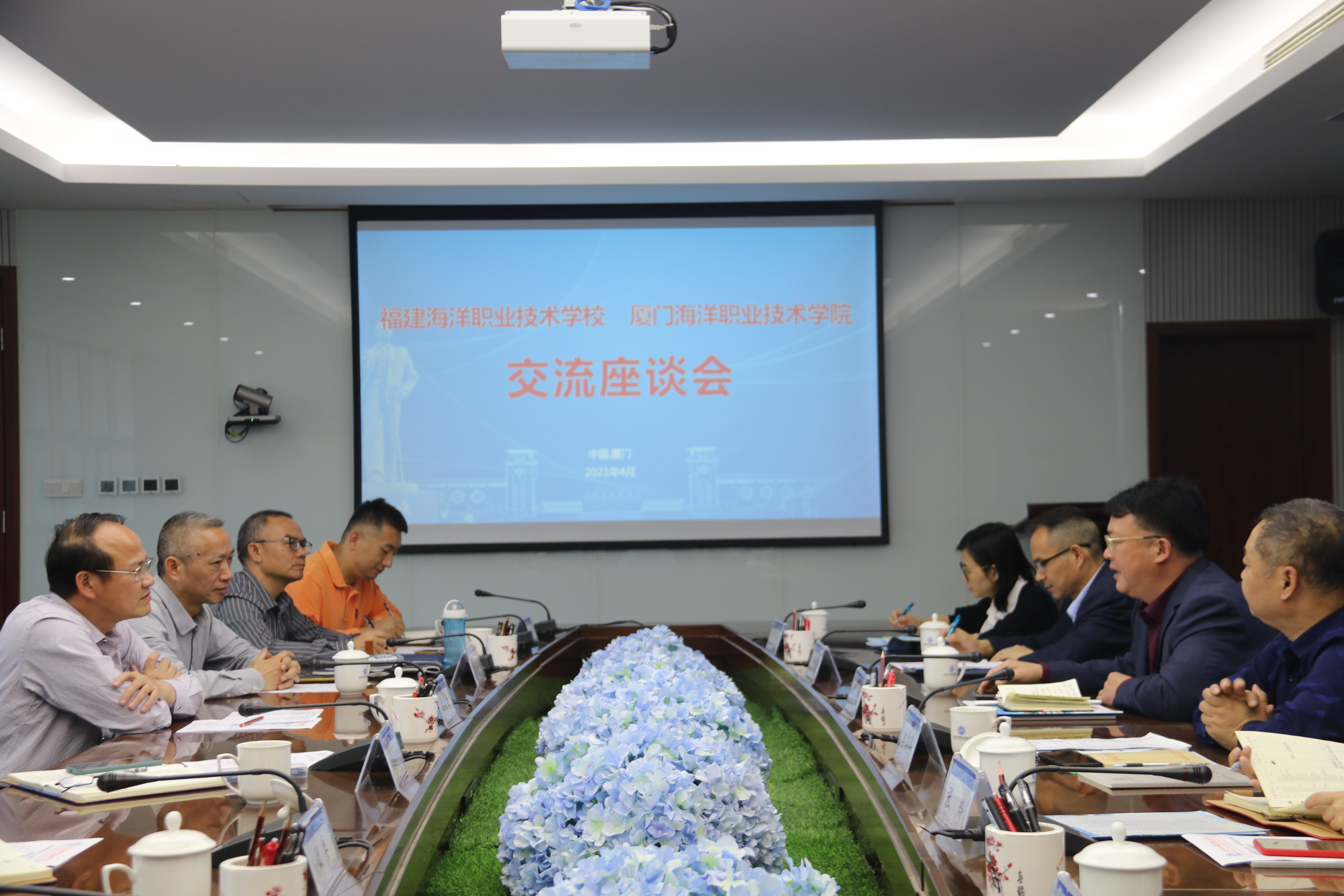 4月21日上午,福建海洋职业技术学校党委书记、校长李水根、副校长李美亭一行到我校交流座谈。副校长马国玄出席座谈会。