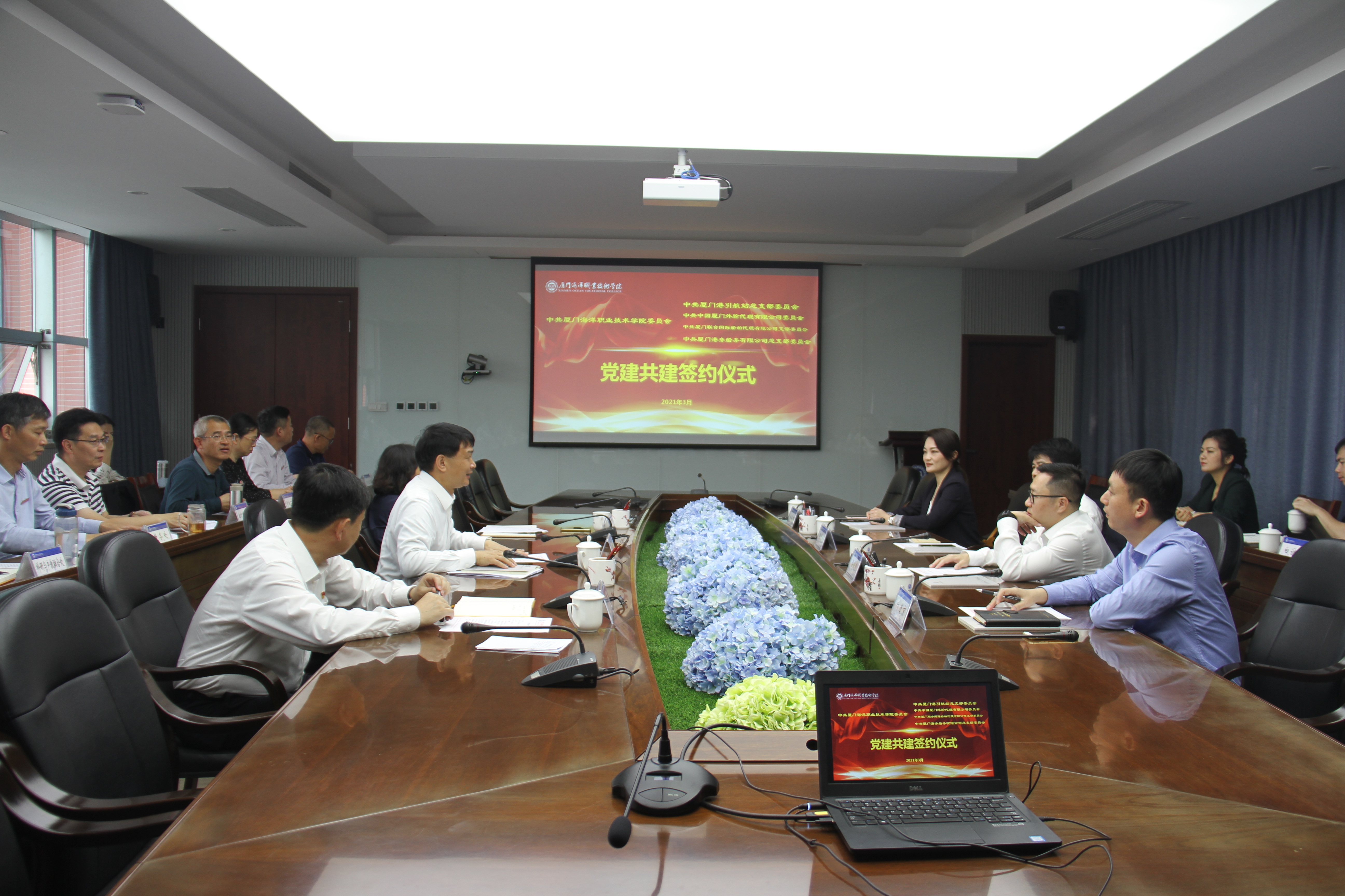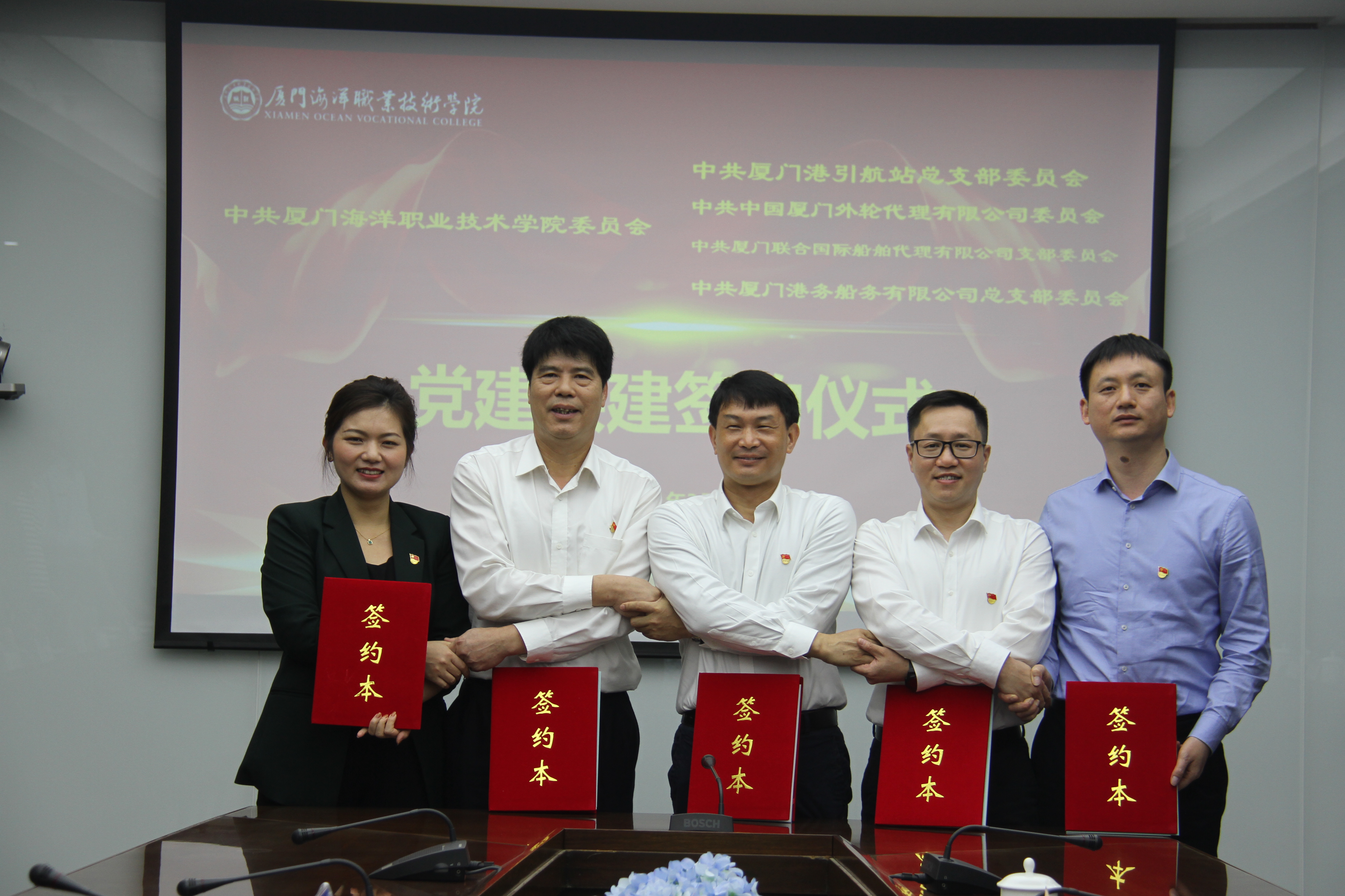 3月30日上午,我校党委与中共厦门港引航站总支部委员会、中共中国厦门外轮代理有限公司委员会、中共厦门联合国际船舶代理有限公司支部委员会、中共厦门港务船务有限公司总支部委员会党建共建签约仪式在翔安校区隆重举行。