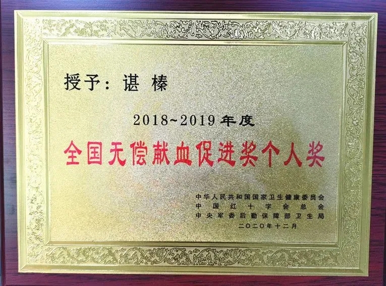 日前,国家卫生健康委等联合发布《关于表彰2018-2019年度全国无偿献血表彰奖励获奖者的决定》,我校团委谌榛老师荣获“全国2018-2019年度无偿献血促进奖个人奖”,为福建省职业院校唯一入选名单。