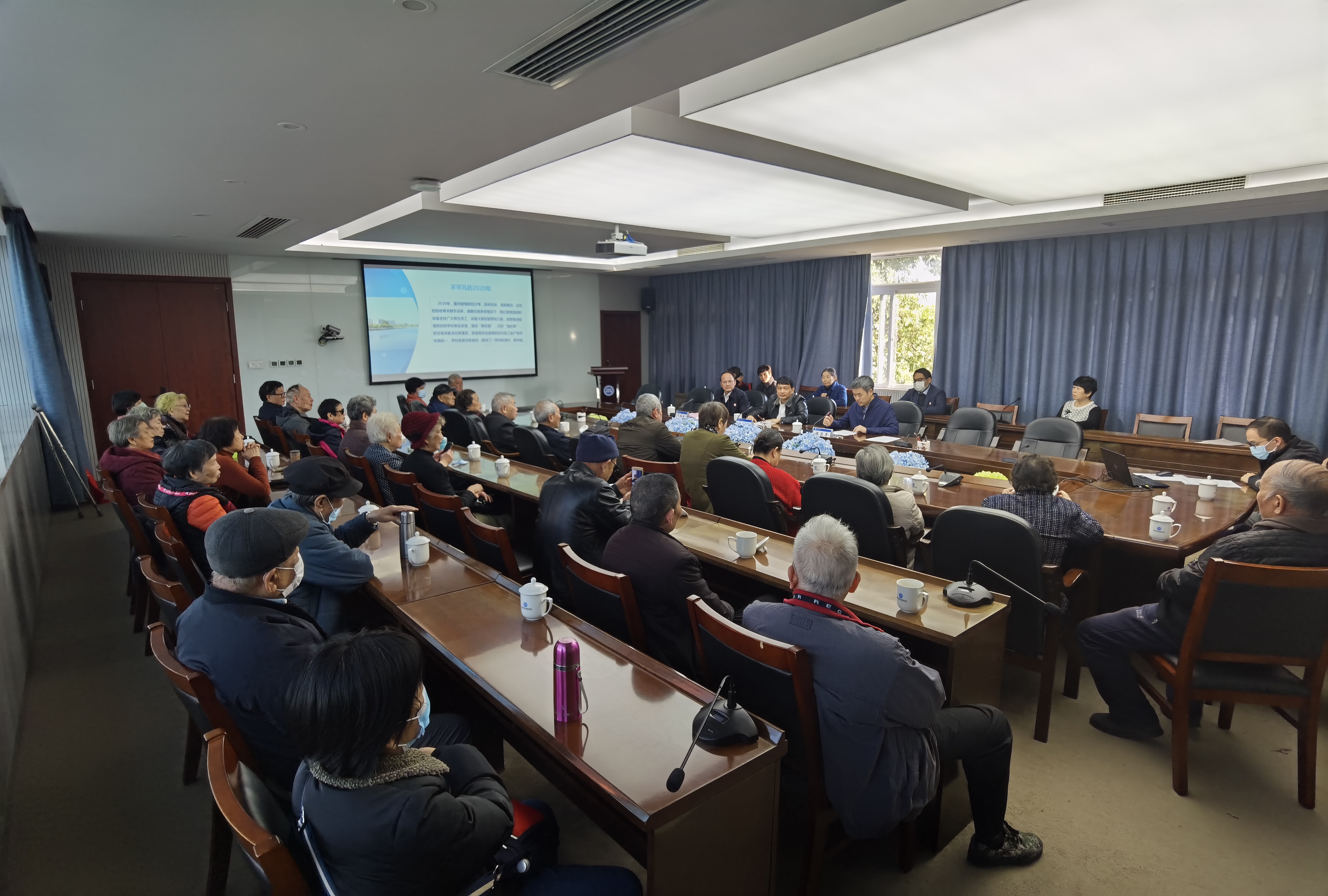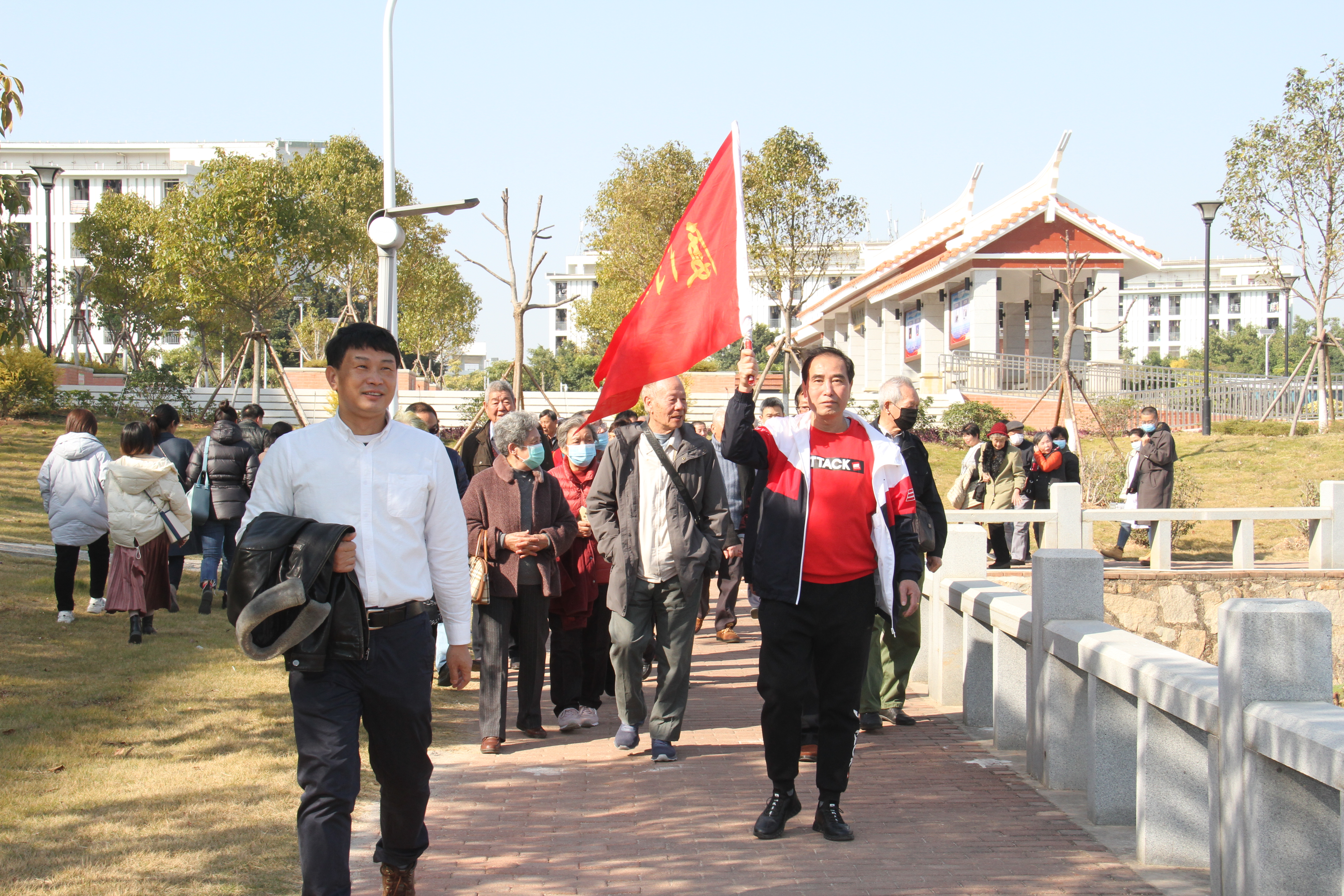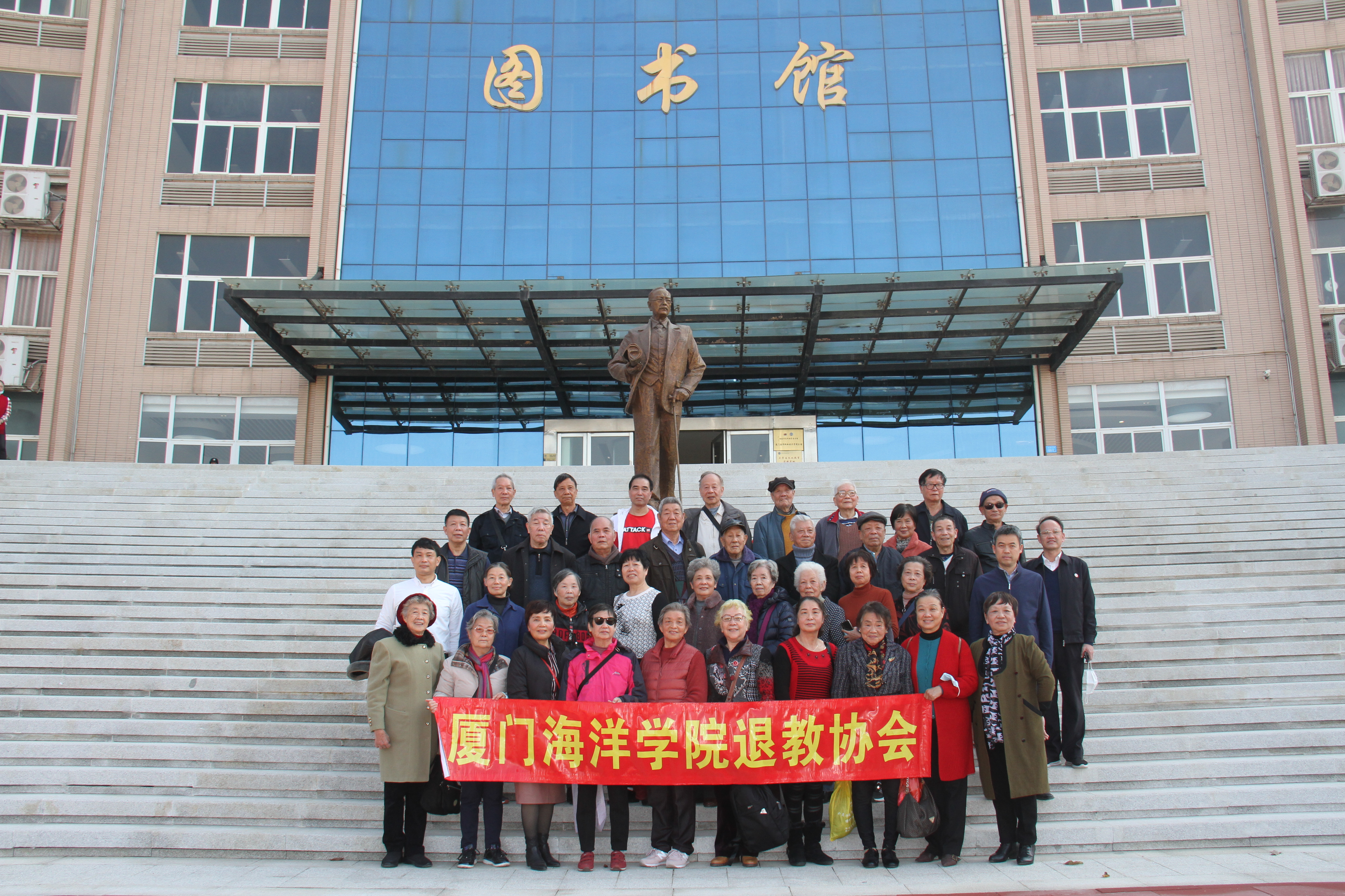 14日下午2时许,冬阳暖照,我校30多名离退休老同志应邀来到翔安校区,校党委书记陈一端、校长陈昌萍、副校长马国玄在主校门迎接并全程陪同。