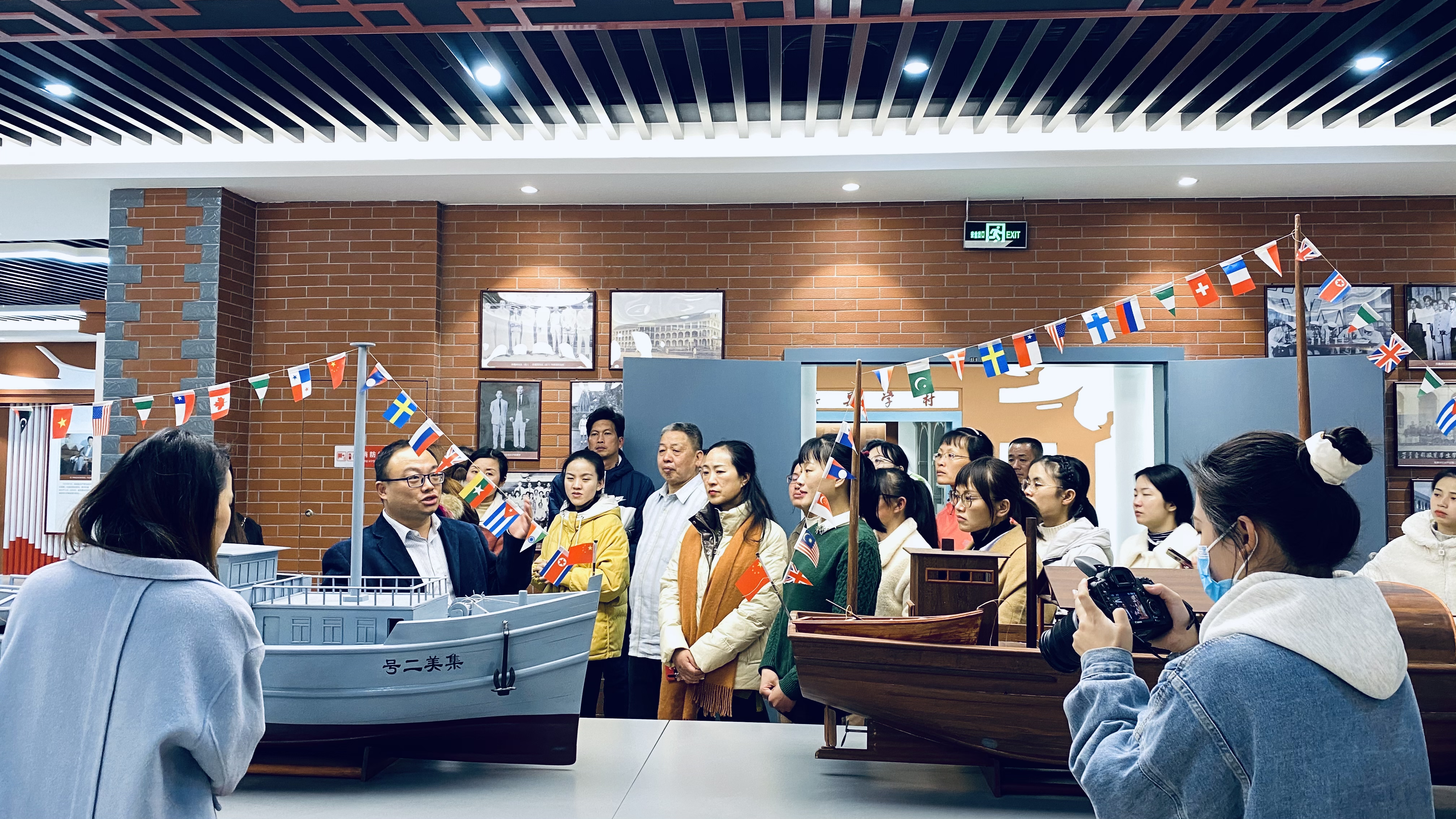 校友办带领大田“第二集美学村”讲解志愿者参观了校主纪念馆、校史展览馆、船模博物馆,详细介绍了各类场馆的设计建设思路和特色。