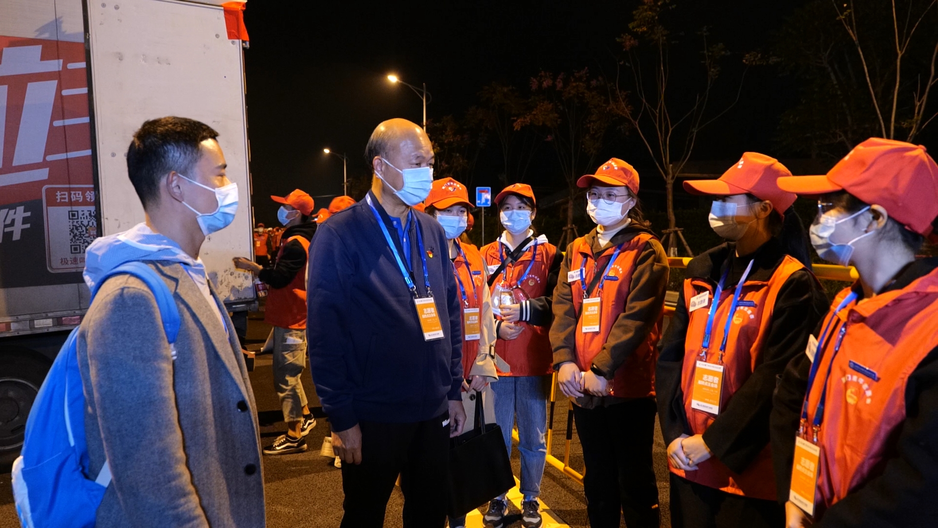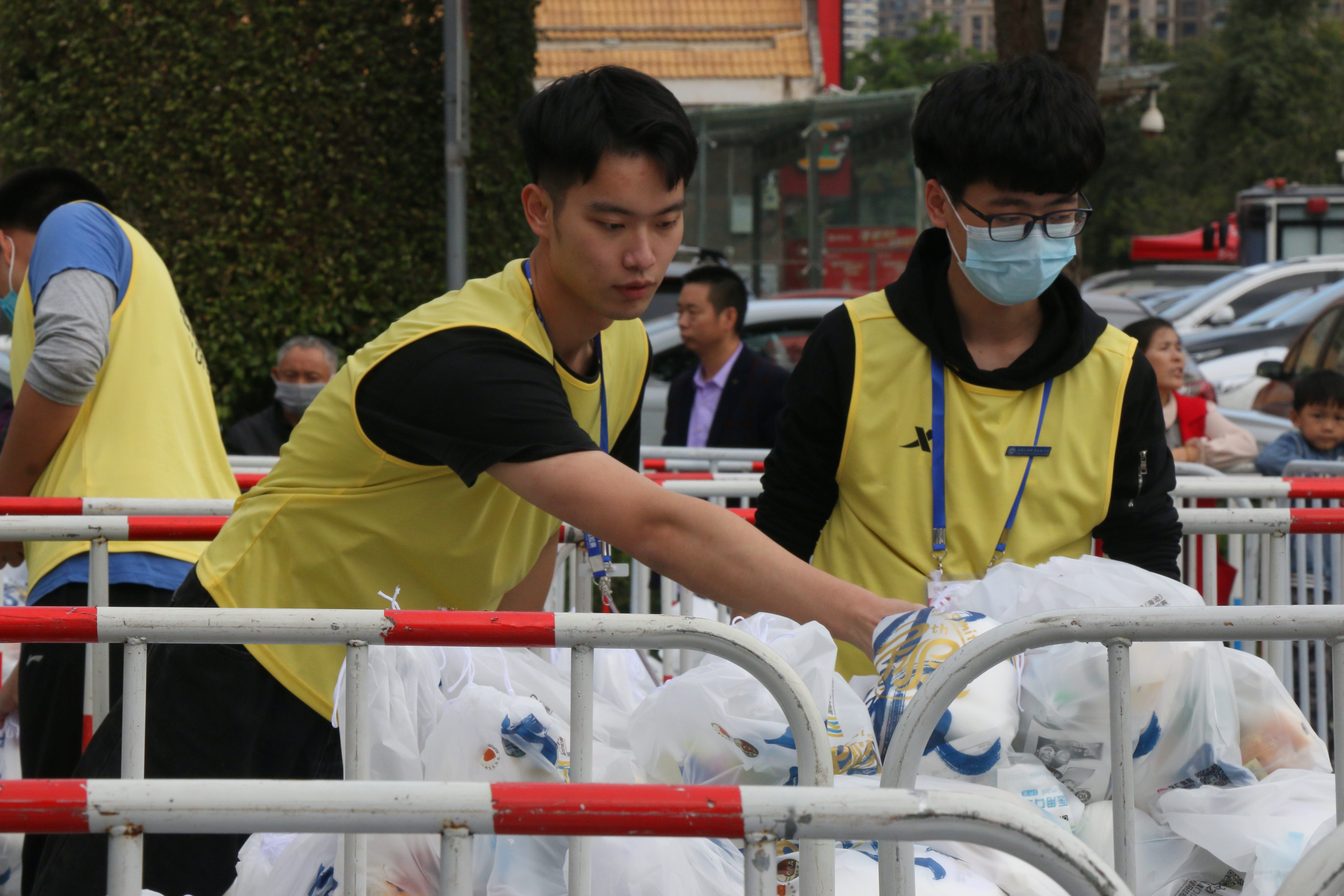 凌晨3:00,伴着黑黢的天空,志愿者们乘上公交车整装待发,前往半程马拉松的现场。抵达赛事现场,志愿者们立即着手物资发放、衣物寄存等前期准备工作,以积极主动的服务为本次赛事保驾护航。
