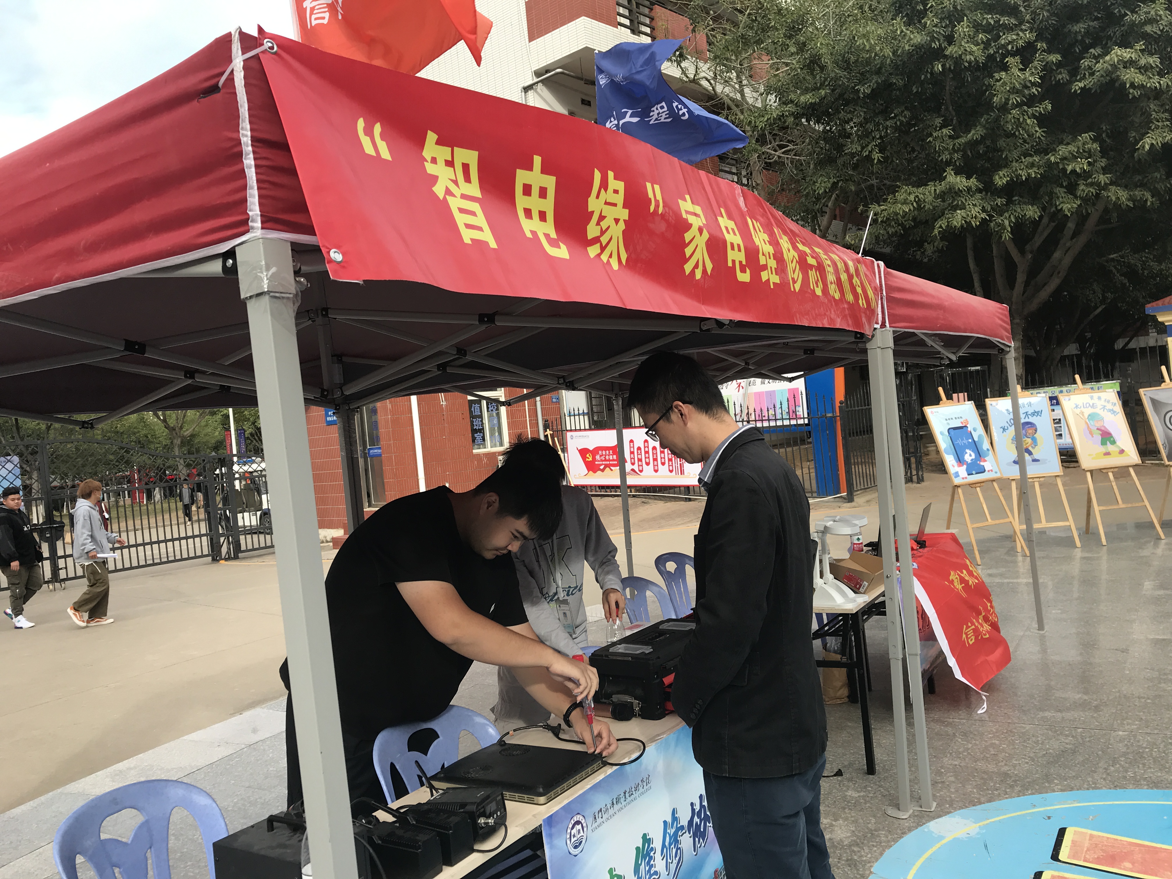 活动现场展示了各个协会的科技文化成果。有VR校园全景,通过扫描二维码,360度观看美丽校园;有VR垃圾分类,让同学们沉浸式学习“垃圾分类”小窍门,助推形成校园垃圾分类新风尚;有VR红色之旅,让同学们穿越时空,在寓教于乐中接受红色教育;有“智电缘”计算机维护志愿服务队,用自己所学专业帮助师生解决实际的困难。